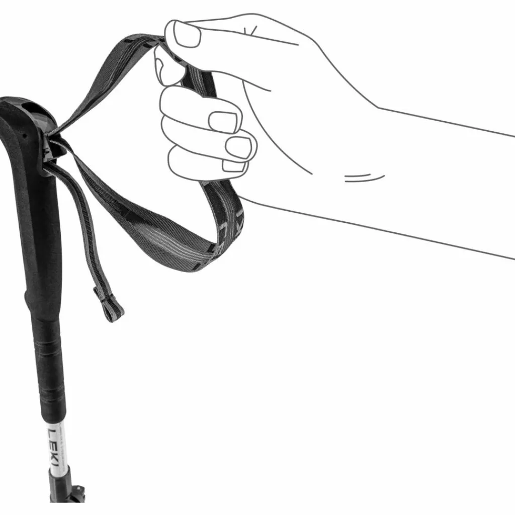 Der Stock ist mit der Leki Flex Tip Spitze und einem 4 cm Teller ausgestattet. Dank seines Gewindes kann der Teller werkzeugfrei ausgetauscht oder bei Bedarf entfernt werden.
