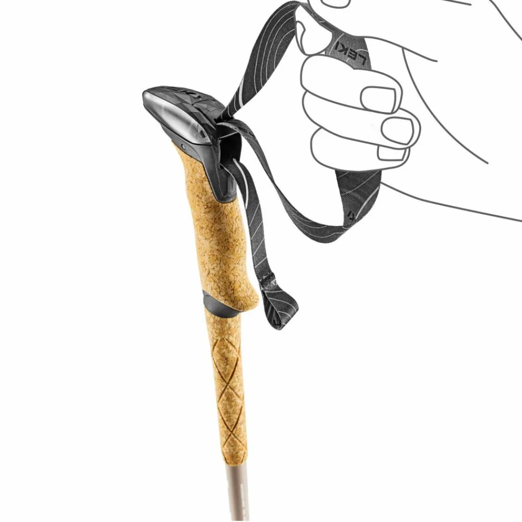 Mit dem Aergon Air hat Leki einen leichten Griff entwickelt, der dein Handgelenk beim Wandern optimal ausrichtet und auch bei langen Touren sehr angenehm ist. Bei steileren Abstiegen kannst du dich zudem bequem abstützen. Der Griffkopf ist rutschfest gummiert und leicht angewinkelt. Die nach unten verlängerte Griffzone ermöglicht dir, den Stock bei steilen Anstiegen oder Traversen schnell mal kürzer zu greifen. Auch die dünnen, weichen Handschlaufen lassen sich ganz einfach auf die passende Länge einstellen.