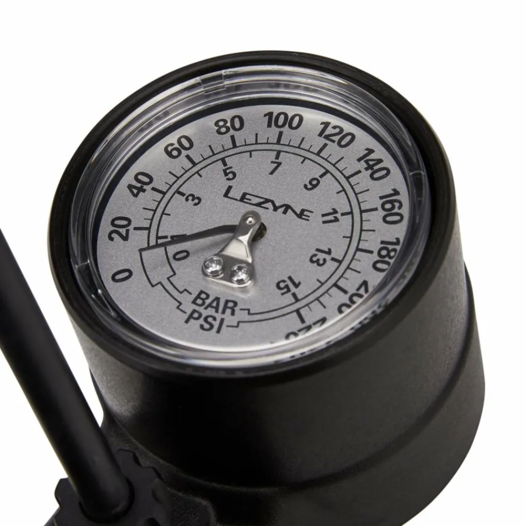 Das gut ablesbare, analoge Manometer verfügt über eine PSI- und BAR-Anzeige, die dir bis 15,1 bar/220 PSI zuverlässig den Luftdruck anzeigt. Nach getaner Arbeit lässt sich der Pumpenkopf am Fuß befestigen. Das Material überzeugt ebenfalls. Griff und Standfüße bestehen aus bruchfestem Kunststoff, der Pumpenkörper aus Stahl.