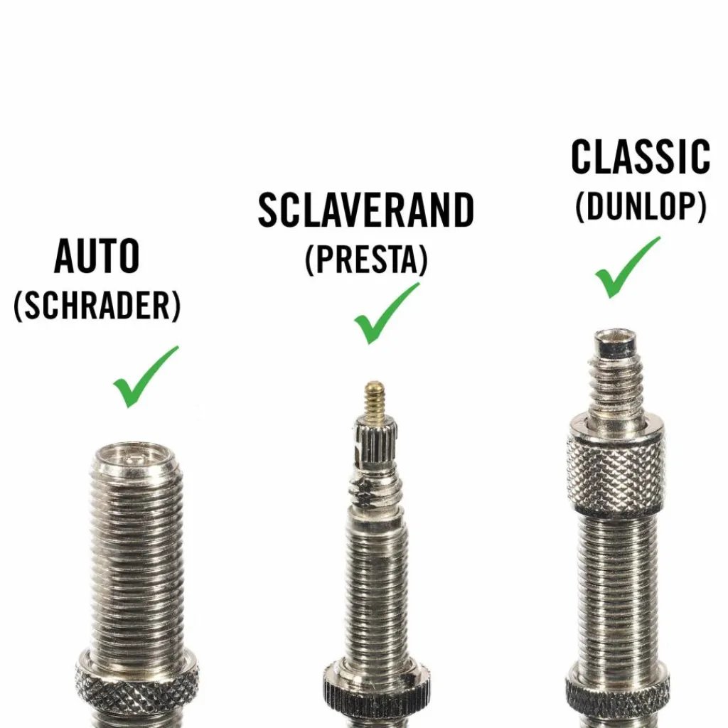 Nicht alle Räder haben das gleiche Ventil. An einigen Pumpen musst du dann am Pumpenkopf den Ventil-Adapter tauschen oder drehen. Die Macro Floor Drive verfügt über zwei Ventilaufnahmen und erleichtert dir damit die Handhabung. Einfach die entsprechende Ventil-Aufnahme aufs Fahrradventil aufstecken, den Hebel zum Fixieren um 90 Grad nach oben klappen und lospumpen. Mit der Macro Floor Drive DV kannst du alle gängigen Ventile nutzen: Auto/Schrader, Sclaverand/Presta, Dunlop/Classic.