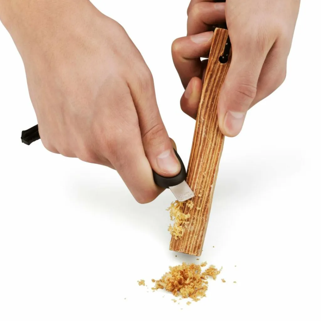 GrandPa’s FireGrill ist ein klappbarer Grillrost, der in seiner Mitte Würstchen, Fleisch oder Gemüse sicher und verlustfrei festhält. Mithilfe eines Stocks kannst du den Grillrost über die Glut halten. Geht es größeren Würstchen, Maiskolben oder Marshmallows an den Kragen, greifst du zu GrandPa’s FireFork Bio. Die Gabel wird ebenfalls an einem Stock befestigt und richtet dank ihrer Schutzkappe im Gepäck keinen Schaden an. Damit das Feuer überhaupt anfängt zu brennen, befindet sich ein Tinder-on-a-Rope (Fatwood) und ein Swedish FireSteel scout Bio (Feuerstarter) im Paket. Damit kannst du bei jeder Witterung ein Feuer entfachen.