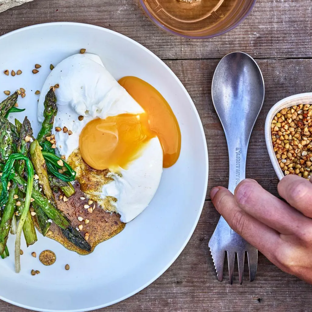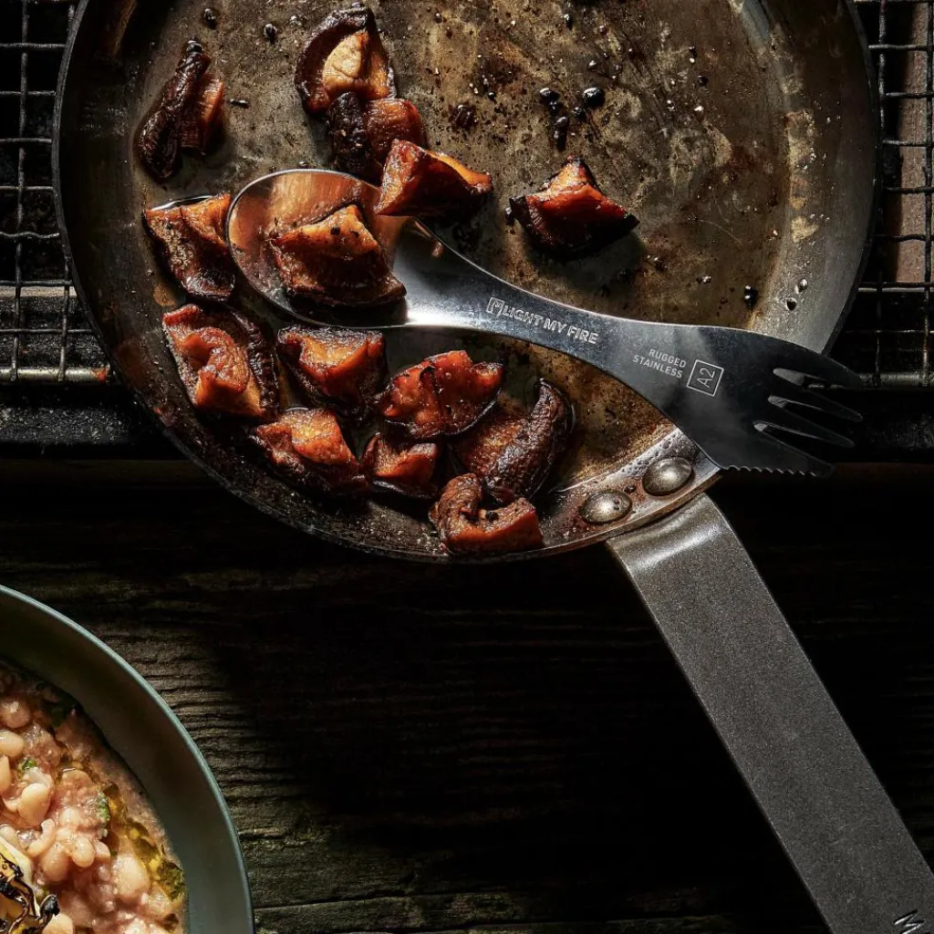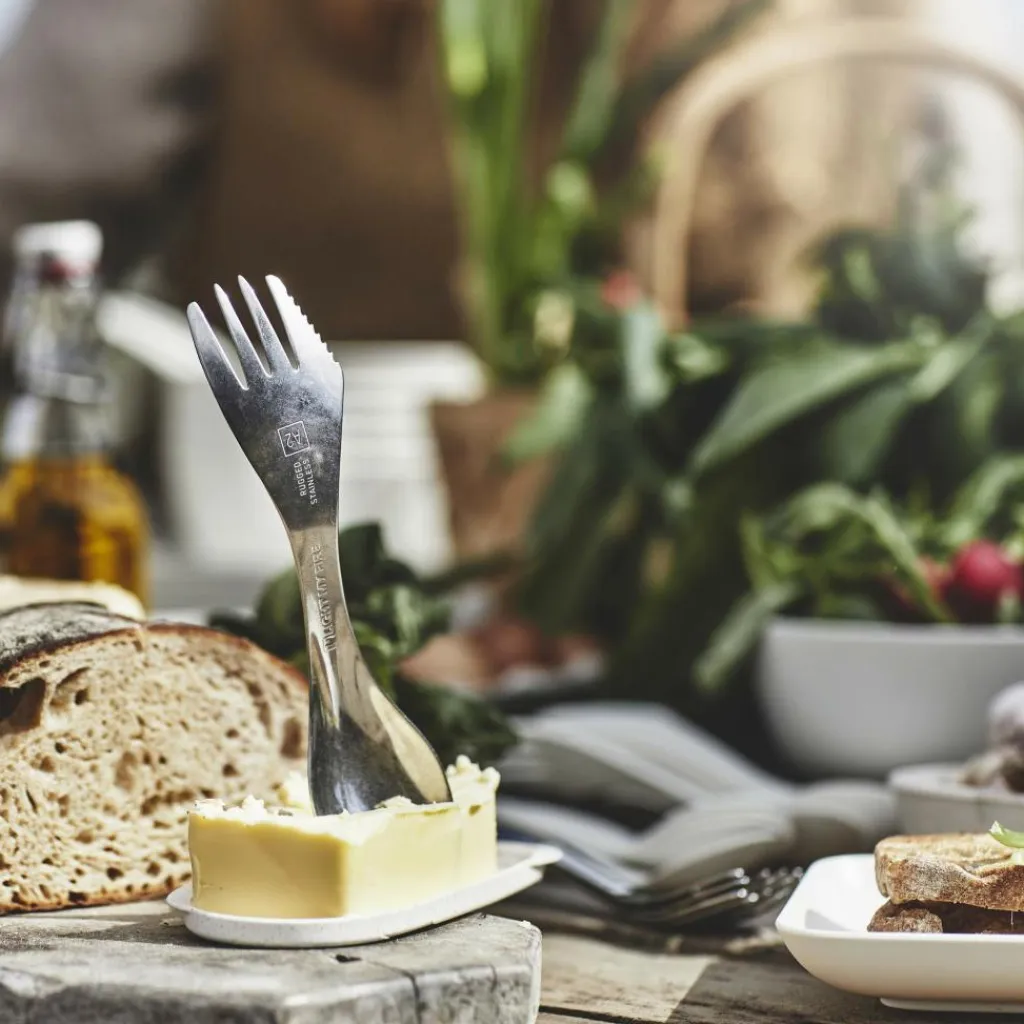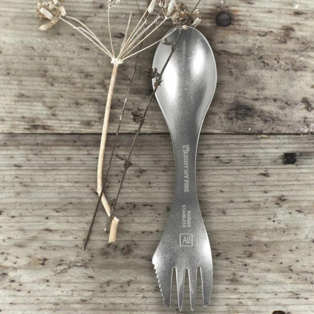 Der Swedish Spork Stainless kombiniert am einen Ende einen Löffel und am anderen eine Gabel. Die Gabel ist mit einer Sägezahnung ausgestattet, die es dir ermöglicht, leichte Schneidarbeiten zu verrichten. Dank des verwendeten Materials ist der Spork extrem langlebig. Bei der Verwendung mit beschichteten Töpfen und Pfannen sollte man jedoch vorsichtig sein, um die Beschichtung nicht zu beschädigen.