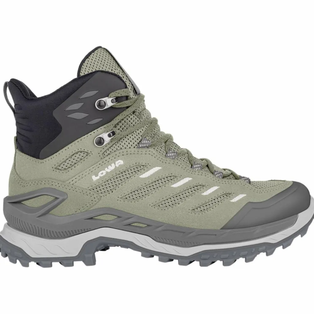 Als Obermaterial wird größtenteils auf ansprechendes und zugleich haltbares Veloursleder gesetzt, teilweise wird es durch synthetisches Leder ergänzt. Im Schaft- und Zungenbreich kommt außerdem synthetisches Mesh-Gewebe zum Einsatz. Dadurch wird nicht nur an Gewicht gespart, es wird auch die Flexibilität erhöht. Die Zehenbox wird zudem durch eine robuste Schutzkappe aus TPU verstärkt. Da bei dieser Version des Innovo auf eine Membran verzichtet wird, ist der Stiefel nicht wasserdicht. Dadurch bietet er aber ein noch angenehmeres Trageklima. Ideal für sommerliche Wanderurlaube in niederschlagsarmen Regionen, bei denen ein Halbschuh aufgrund des Geländes oder des Gewichts des Rucksacks nicht in Frage kommt.