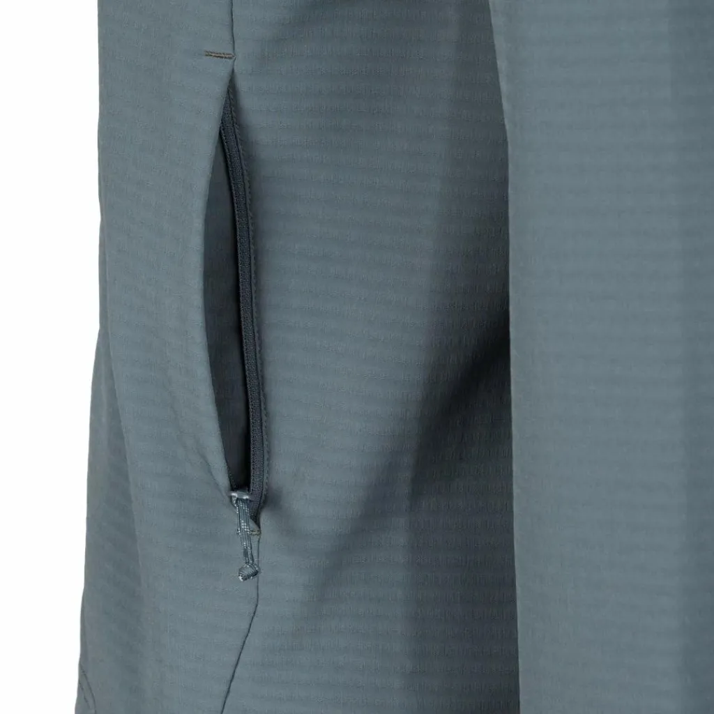 Die Außenseite hält kühlen Wind in Schach und ist so elastisch, dass auch ausladende Steig- oder Kletterbewegungen problemlos möglich sind. Die Innenseite kann dank ihrer weichen Waffelnstruktur mit einem erstklassigen Feuchtigkeitsmanagement sowie einem sehr guten Wärme-Gewichtsverhältnis auftrumpfen. Praktisch auf längeren Touren: Dank der naturbasierten, silberfreien HeiQ Fresh-Ausrüstung nimmt die Jacke nur langsam unangenehme Gerüche an.