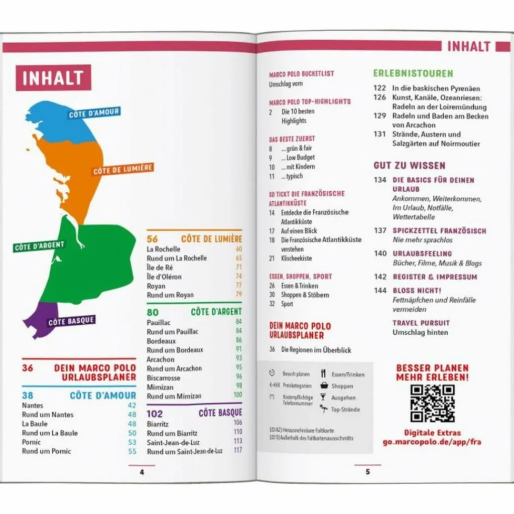 Ob Strandurlaub, Familienreise oder Städtetrip – stell dir mit deinem Marco Polo Reiseführer genau die Reise zusammen, auf die du Lust hast! Schon vor deinem Trip findest du darin Wissenswertes über Land und Leute, Tipps für Unternehmungen auch abseits des Mainstreams und spannende Erlebnistouren für jeden Geschmack. So entdeckst du die schönsten Seiten der Französischen Atlantikküste und verlierst dank der vollständig überarbeiteten Karten und Stadtpläne nie den Überblick!
