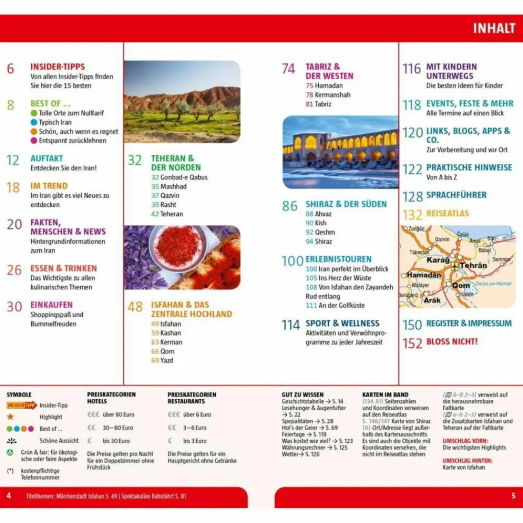 Kompakte Informationen, Insider-Tipps, Erlebnistouren und digitale Extras:Entdecken Sie mit MARCO POLO den Iran von den glänzenden Palästen und Moscheen Isfahans bis zu den kilometerlangen Ladengassen im Basar von Kashan – mit dem MARCO POLO Reiseführer kommen Sie sofort im Iran an. Erfahren Sie, welche Highlights Sie neben den Juwelen der Schahs in Teheran und einem Trip in die spektakuläre Wüste Lut nicht verpassen dürfen, wo sich die aussichtsreichsten Routen durch einmalige Landschaften winden und dass Sie bei einer Bootsfahrt vor dem Inselchen Hengam Bekanntschaft mit Delphinen machen können.Die Insider-Tipps des Autors lassen Sie den Iran individuell und authentisch erleben und mit den Low-Budget-Tipps sparen Sie bares Geld. Erkunden Sie den Iran in all seinen Facetten mit den maßgeschneiderten MARCO POLO Erlebnistouren. Das speziell dafür entwickelte Design sorgt – schon beim Lesen und umso mehr vor Ort – für größtmögliche Orientierung.Die kostenlose Touren-App führt Sie digital (und ohne Roaminggebühren) auf den besonderen Wegen der Erlebnistouren. Und Events&News mit aktuellen Veranstaltungen (Ausstellungen, Konzerten, Festivals, Sportevents…) für die nächsten 3 Monate, brandaktuellen Informationen zu den Printinhalten und zusätzlichen Insider-Tipps hält Sie immer auf dem neuesten Stand. In jedem Band gibt es einen übersichtlichen Reiseatlas und eine herausnehmbare Faltkarte – in beide sind natürlich die Erlebnistouren eingetragen.