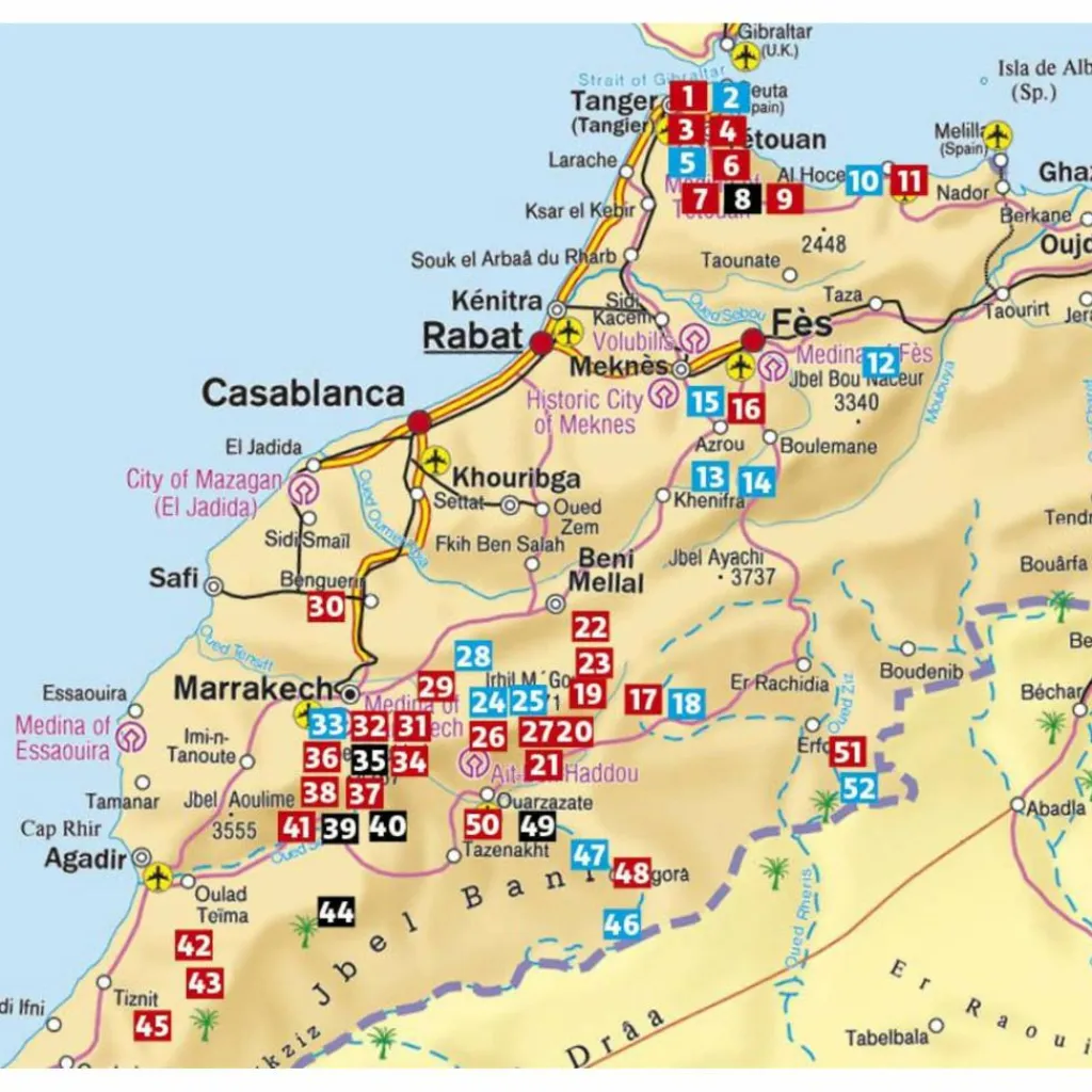 Nur wenige Seemeilen von Europa entfernt beginnt das Wanderabenteuer in einer anderen Welt: in Marokko, wo Atlantik und Mittelmeer aufeinandertreffen und orientalische Magie auf spektakuläre Landschaften trifft. Wandern in Marokko bedeutet Vielfalt pur – durch Dünen und Wüsten, über schroffe Gebirge, entlang einsamer Küsten und durch Dörfer wie aus Tausendundeiner Nacht. Der Rother Wanderführer „Marokko“ stellt 52 abwechslungsreiche Touren vor – von gemütlichen Halbtageswanderungen bis hin zu anspruchsvollen Bergtouren in entlegenen Regionen.