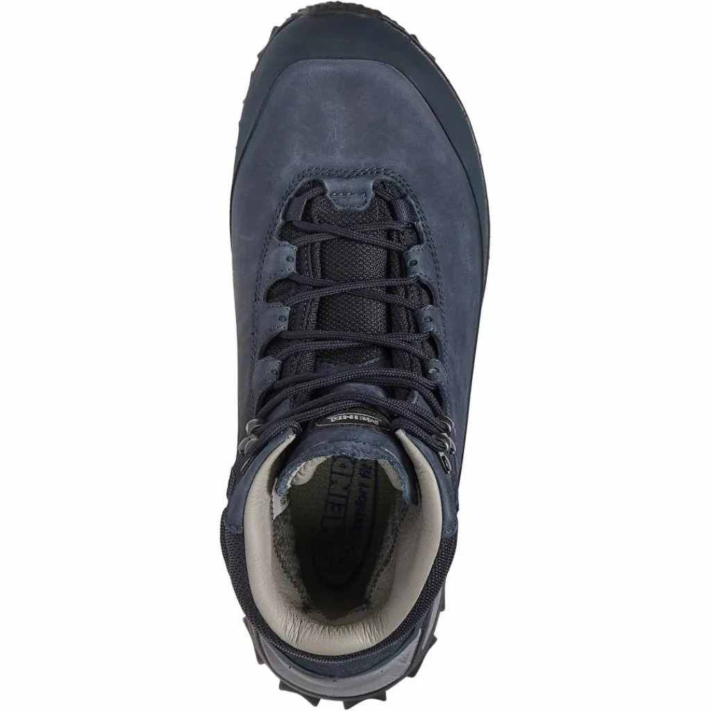 Beim Obermaterial kommen Velours- und Nubukleder zum Einsatz, das an den Zehen und an der Ferse zusätzlich durch einen umlaufenden schützenden Gummirand verstärkt wird. Innen ist der leichte Schnürer mit feuchtigkeitsleitendem Textilfutter ausgestattet, eine Gore-Tex Membran sorgt dafür, dass die Füße trocken bleiben. Der Abschluss des Schafts wurde für ein besonders angenehmes Tragegefühl mit Leder abgefüttert und weich gepolstert. Neben der stabilen und gut gedämpften Sohlenkonstruktion leistet auch die Einlegesohle mit Korkanteil ihren Beitrag zum hohen Komfort des Melago GTX.