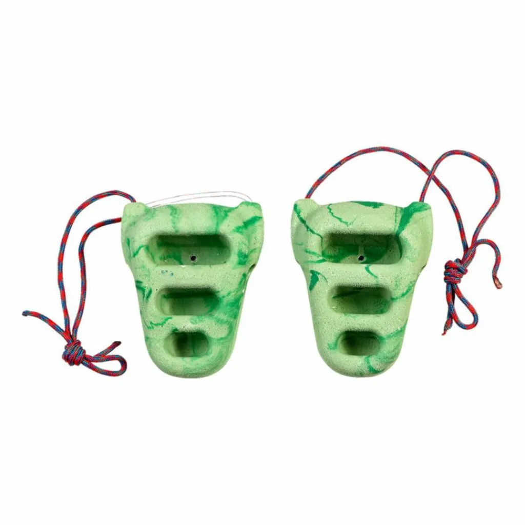 Die Trainingsgriffe werden an den beiliegenden Seilen freischwingend angebracht und stellen dadurch eine zusätzliche Herausforderung an die Koordinationsfähigkeit dar! Die zwei Griffe haben verschieden große Mulden, damit Sie zwischen 2-, 3- oder 4-Finger-Griffen variieren können. Ihre feine Oberfläche ist schön griffig und rau.