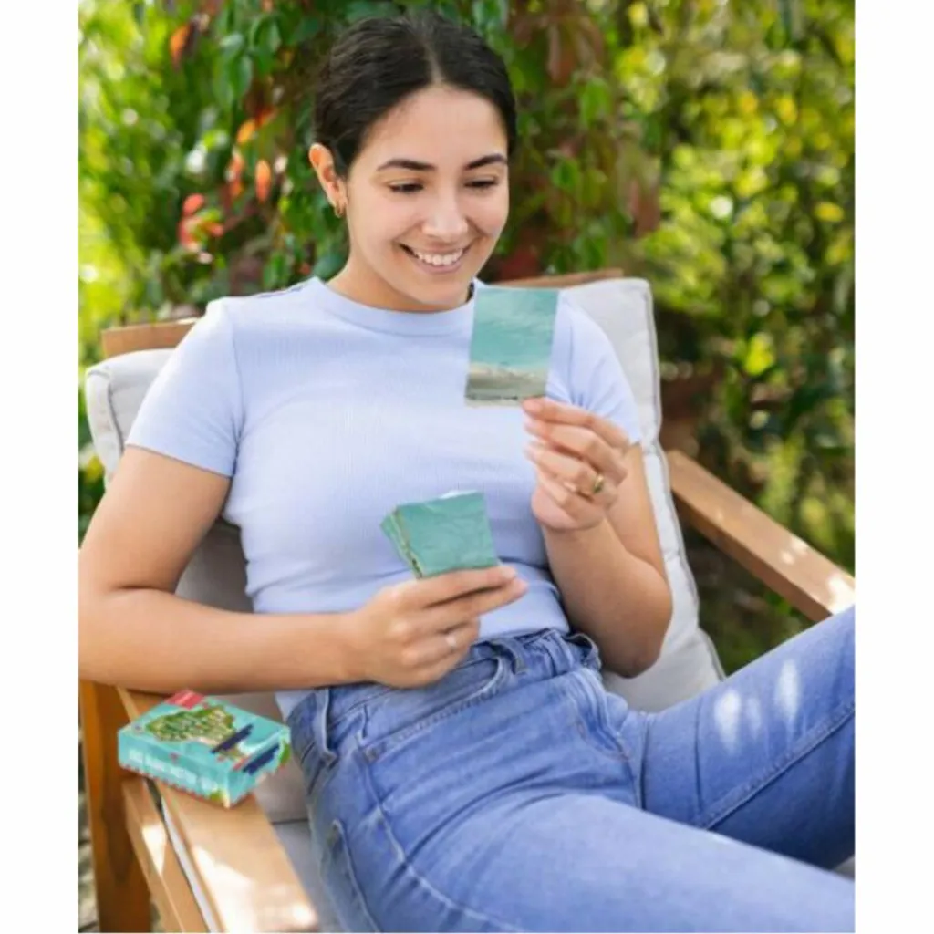 In 75 Fragen führt dieses knifflige Quiz alle Kenner*innen von Ländern, Meeren, Bergen, Flüssen und Städten einmal rund um die ganze Welt. Kompakt verpackt in einer stabilen, kleinen Box passt das Quiz natürlich in jedes Reisegepäck. Der schöne Clou: Die Lösungen stehen in einem extra Lösungsheft – und die Rückseiten der festen Karten ergeben, richtig gelegt, eine riesige Weltkarte.