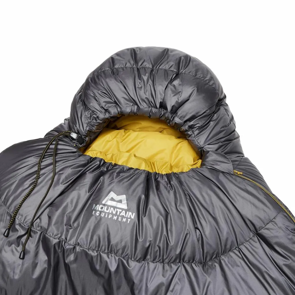 Zahlreiche Details machen Mountain Equipments Schlafsäcke unverwechselbar. Angefangen bei den haptisch unterscheidbaren Schnürzügen an der Kapuze, damit du in der Nacht weißt, ob du den oberen Teil der Kapuze (runde Kordel) oder den Kinnbereich (flache Kordel) zuziehst. Am Wärmekragen setzt Mountain Equipment auf einen Fidlock Magnetverschluss. Es entfällt damit das Herumnesteln an Druckknöpfen. Einfach den Verschluss übereinanderführen, um ihn zu schließen und an der Lasche ziehen, um ihn wieder zu öffnen.
