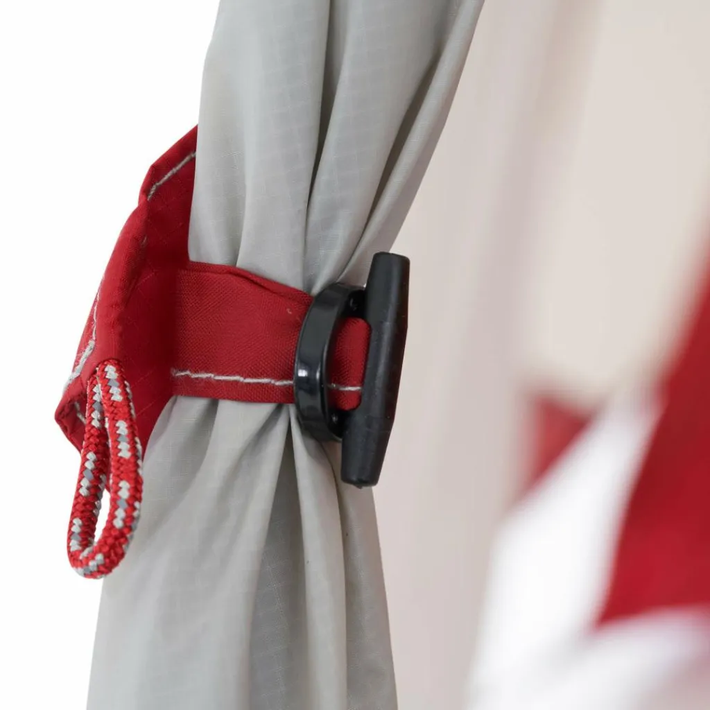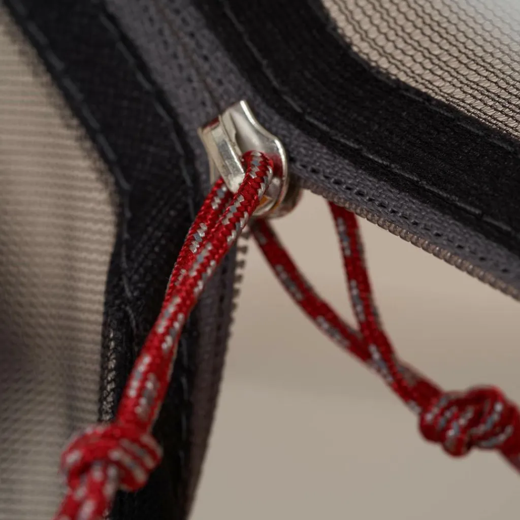 Den Eingangsbereich kannst du zur Hälfte oder komplett öffnen, was dir das Einräumen und Zusammenpacken deiner Ausrüstung erleichtert bzw. einen Panoramablick aus dem Zelt ermöglicht. Die Apsis verstaut deinen Rucksack oder andere Ausrüstung. Um sie aufzuspannen genügt lediglich ein Hering.