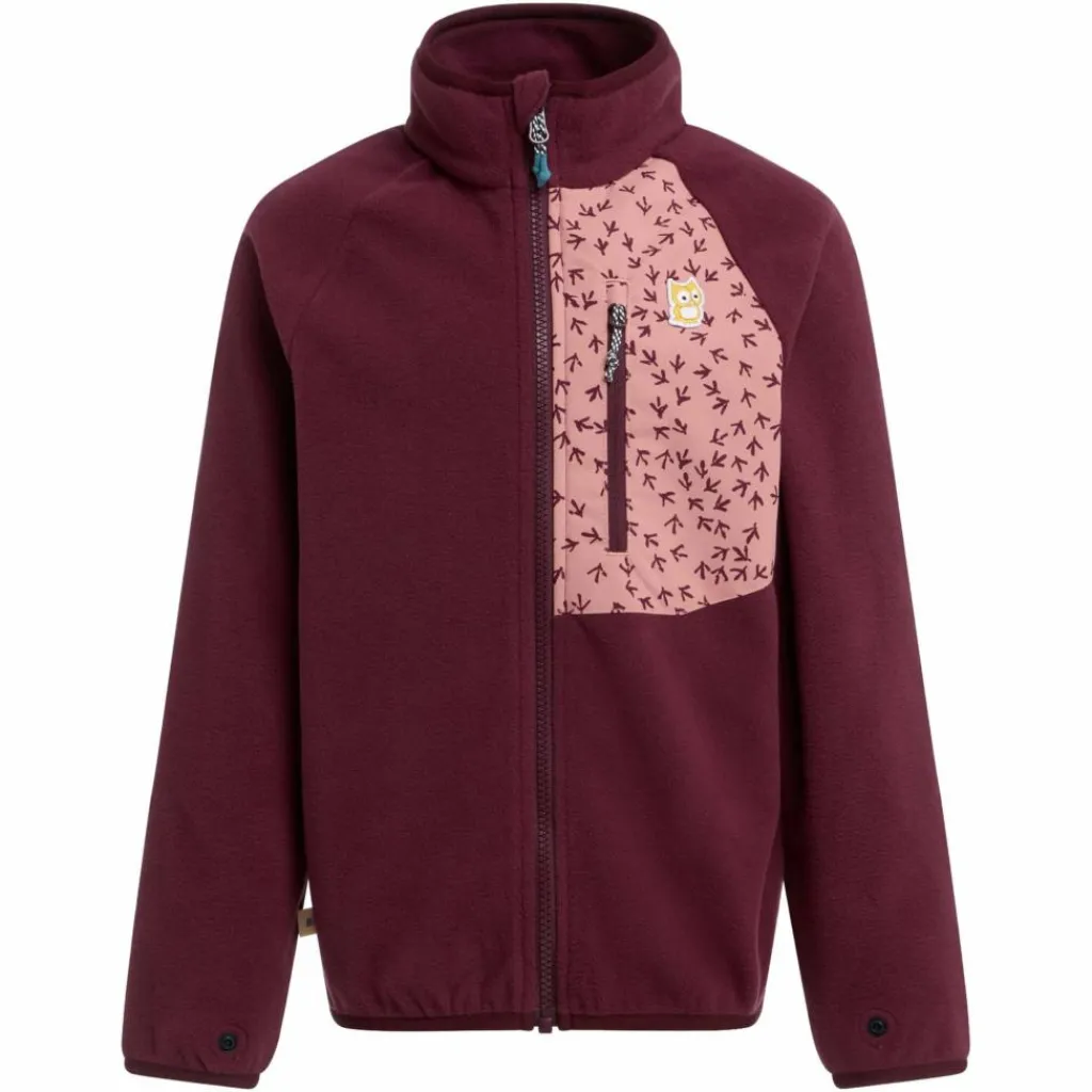 Die Fleecejacke ist angenehm leicht, flauschig weich und schnelltrocknend. Der Kragen hält den Hals schön warm und ist ebenso wie die Ärmelbündchen und der Saum mit einer elastischen Einfassung ausgestattet. Ein besonderer Hingucker ist die aufgesetzte Brusttasche mit handgezeichnetem Vogelspuren-Print. Perfekt für kleine Naturforscher:innen!
