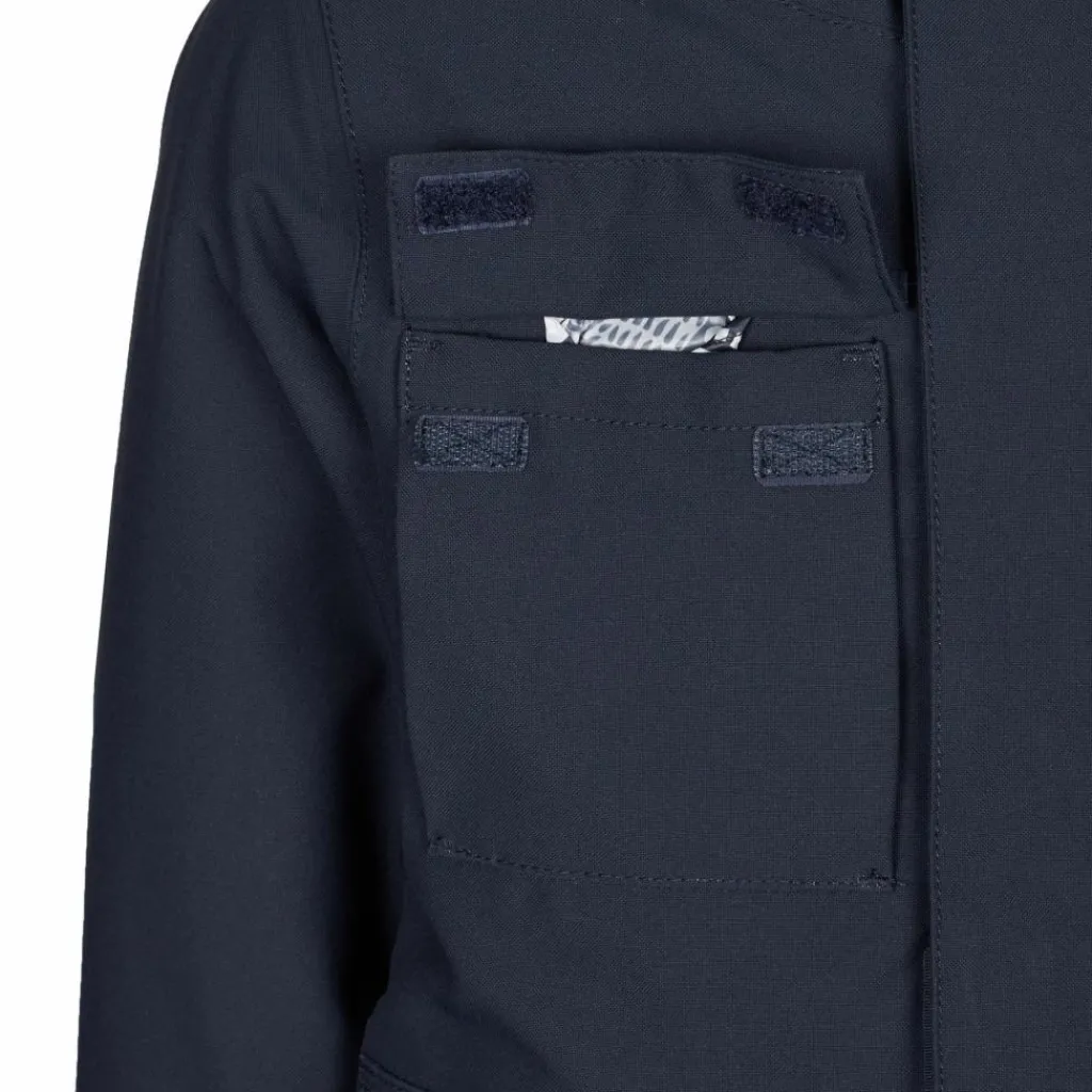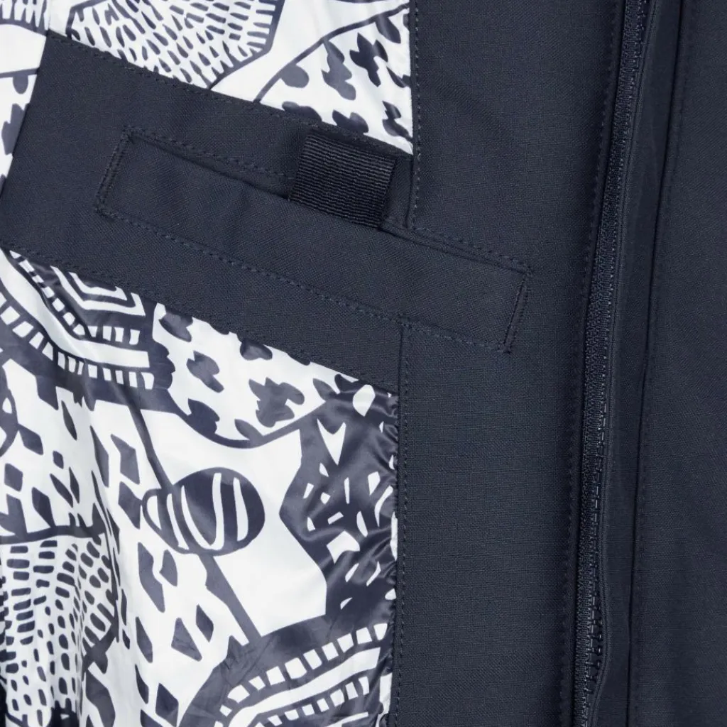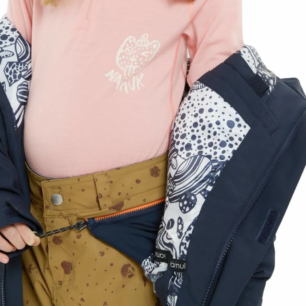 Ein Schnee- und Windfang im Saum sorgt für noch mehr Komfort beim Hinabdüsen der Piste. Zusätzlich verhindern die mit Klettverschluss einstellbaren Ärmelabschlüsse sowie die Windschutzleiste über dem Front-RV, dass kalter (Fahrt-)Wind nach innen dringt. Bei deinen Lütten wird die funktionelle Jacke bestimmt auch mit der toll gestalteten Innenseite für Freude sorgen. Ob beim sportlichen Einsatz oder im Tal – die Mission wird ihre Aufgaben stilsicher erfüllen.