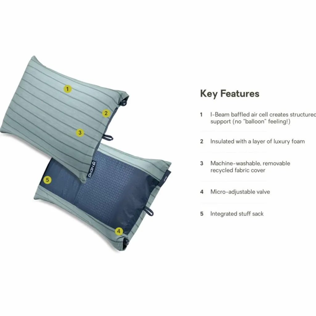 Das Fillow bietet eine perfekte Balance aus Komfort und kleinem Packmaß. Statt auf einem unbequemen Ballon zu schlafen, sinkt dein Kopf hier in die weiche Schaumstoffeinlage ein. So hast du das Gefühl eines richtigen Kissens und zugleich ein geringes Gewicht und Packmaß – ideal, wenn es dich zum Campen nach draußen zieht.