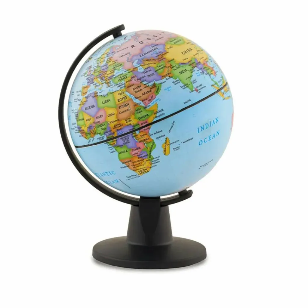 Globus mit 16 cm Durchmesser, Kartografie „Kids“ von National Geographic, schwarzes Kunststoffgestell, unbeleuchtet, deutscher Text.