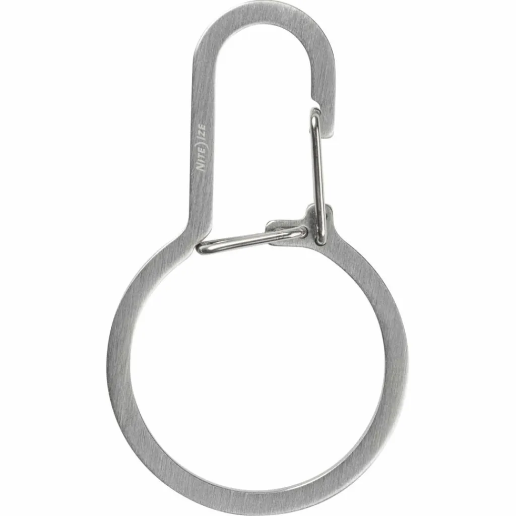 Der Dual-Karabiner besitzt eine Öffnung zur Sicherung an der Gürtelschlaufe und einen innenliegenden Karabinerring zur Befestigung der Schlüssel.