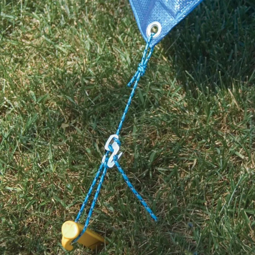 Ohne zu knoten, bringt man das Seil mithilfe eines speziellen Aluminium-Seilspanners kräftig auf Spannung. Ob man nun Boote auf Dachträgern oder ein Tarp stabil fixieren möchte, einfacher als mit diesem System geht es wohl kaum. Ohne Seil.