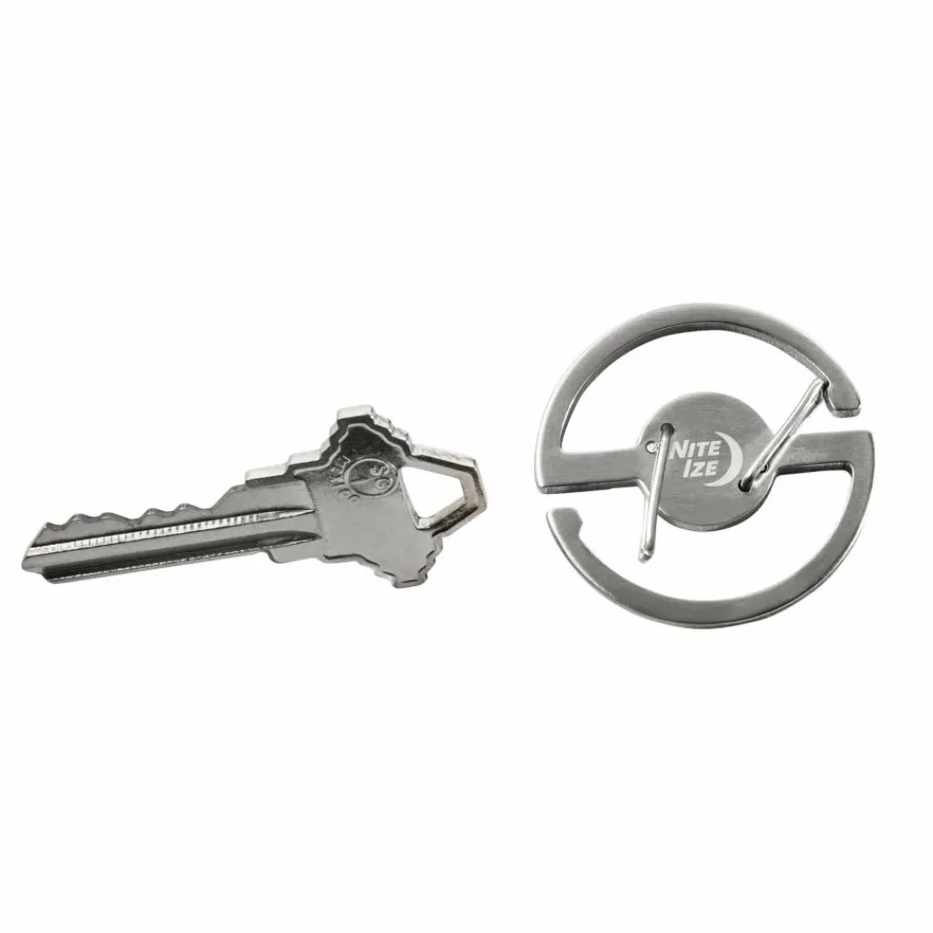 Runder Karabiner aus Edelstahl mit Doppelverschluss und zwei Federschnappern, ideal zur sicheren Aufnahme und Verwahrung mehrerer Schlüssel.