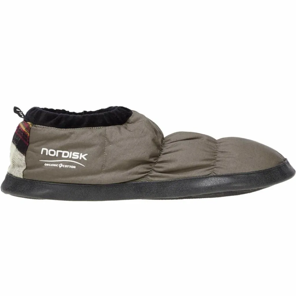 Dank des Hermod Down Shoe aus der Nordisk X Samsøe Samsøe Kollektion bleiben deine Füße selbst dann noch warm, wenn der Kamin nicht so richtig angehen möchte.