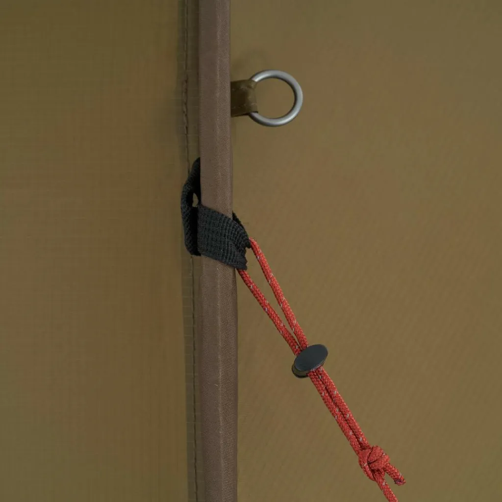 Das Außenzelt aus Polyester mit PU-Beschichtung ist für gelegentliche Outdoor-Aktivitäten in gemäßigten Breiten absolut ausreichend und bietet ein ausgezeichnetes Preis-Leistungs-Verhältnis. Der Einstieg ins Zelt erfolgt wahlweise durch den Seiteneingang oder den Eckeingang. Diesen kannst du bei Bedarf bis zum ersten Gestängebogen aufrollen. So kannst du geschützt in der Apsis sitzen und die Aussicht genießen oder in warmen Sommernächten für ordentlich Durchzug sorgen.