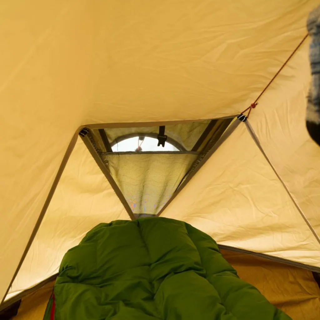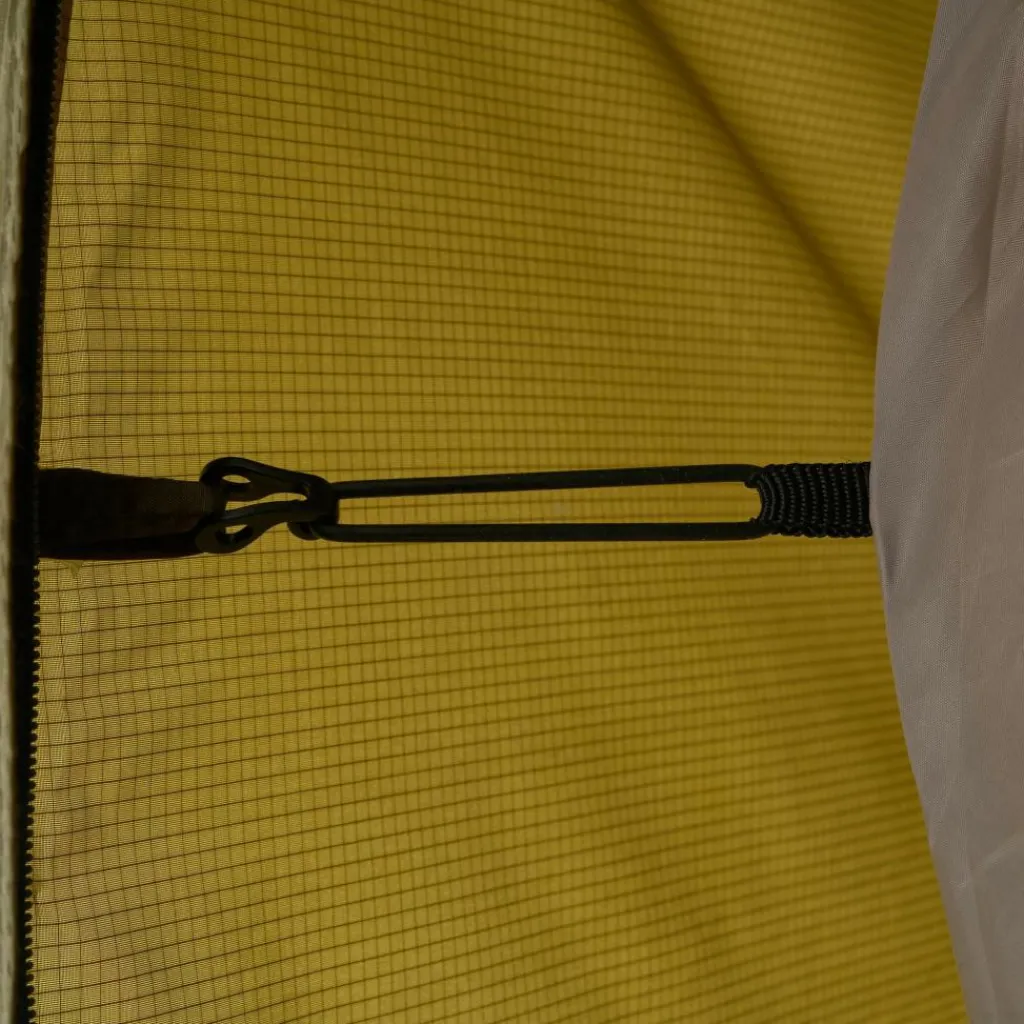Das Zelt bietet einen guten Wetterschutz für dich und deine Ausrüstung. Fuß- und Kopfbereich des Innenzelts laufen spitz zu. Dort kannst du Ausrüstungsgegenstände wie deine Bekleidung oder Packbeutel verstauen. In der Apsis finden Schuhe und Kochutensilien einen Platz. In den drei Mesh-Seitentaschen und der Deckentasche im Zeltinnern, kannst du hingegen schnell erreichbare Kleinteile verstauen. Zwei Haken, jeweils einer im Kopf und Fußbereich, ermöglichen das Aufhängen einer Wäscheleine zum Trocknen feuchter Kleidung oder das Befestigen einer Zeltlaterne.