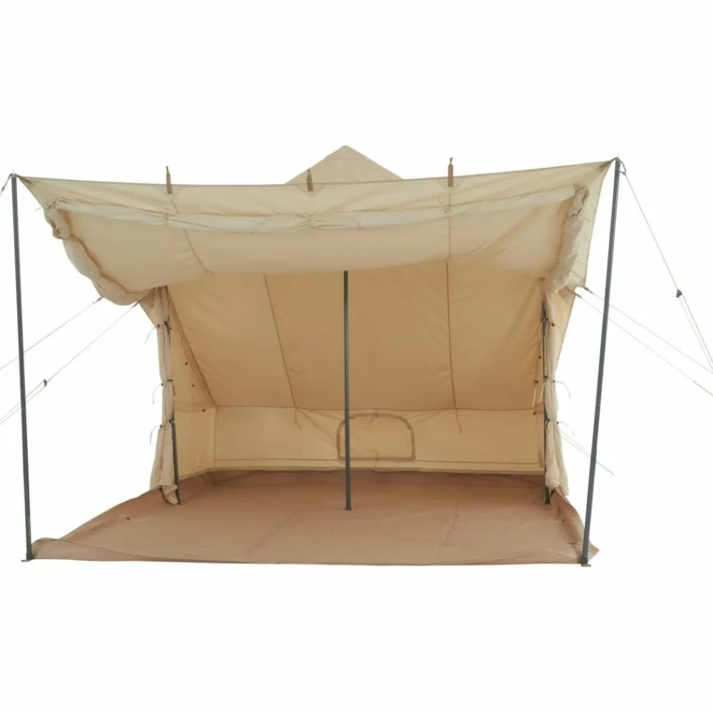 Doch auch im komplett geschlossenen Zustand bietet es dank des Baumwoll-Mischgewebes ein angenehmes Raumklima, da dieses atmungsaktive und kühlende Eigenschaften mitbringt. Gleichzeitig quillt das Gewebe im Kontakt mit Nässe auf und wird so wasserdicht. Auch dank der Fenster sowie der beiden Eingänge, die du alle jeweils mit Moskitogaze verschließen kannst, ist eine hervorragende Belüftung garantiert. Und das, ohne dass Plagegeister eindringen können.