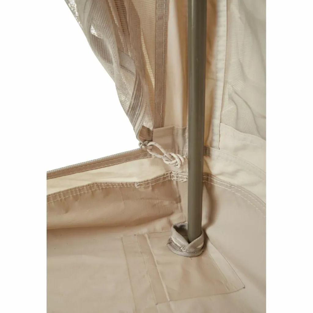 Das kräftige Zelttuchgewebe aus einer Polyester-Baumwoll-Mischung ist atmungsaktiv. Besonders an heißen Tagen spielt es seine Vorzüge aus. Wo in reinen Kunststoffzelten bereits die Flucht nach draußen angetreten werden muss, bleibt es im Vimur Basic Cotton Tent angenehm temperiert.