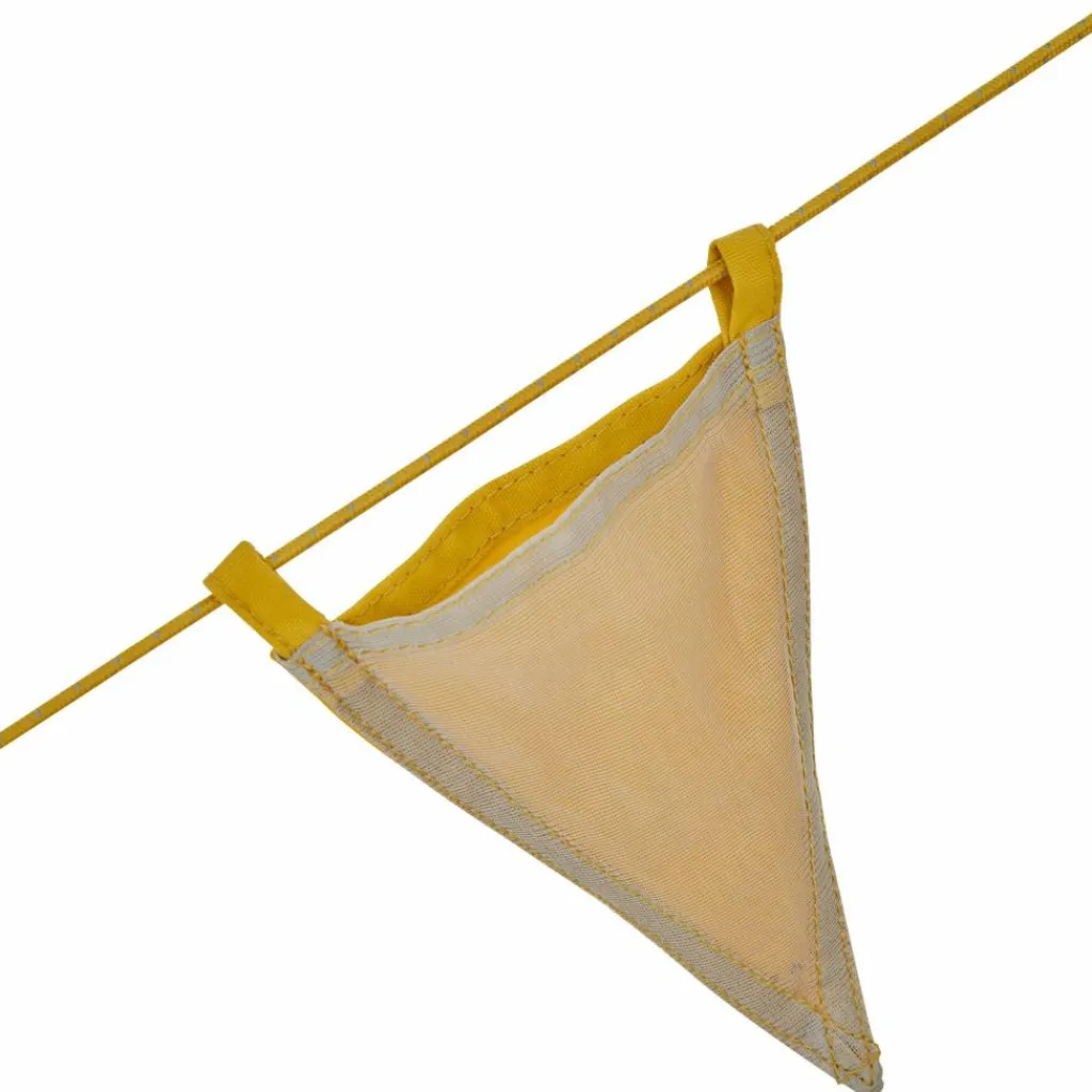 So enthält das Set ein passendes Gestänge sowie einen Satz Heringe und eine Wäscheleine. Zum Abspannen sind passende Leinen mit Wimpeln enthalten, in denen du Kleinkram verstauen kannst. Die Standard-Zip-Anhänger ersetzt du mit den Zughilfen im Set. Alle Teile sind farblich aufeinander abgestimmt und bringen so frischen Wind und ein paar Farbtupfer ins Camp!