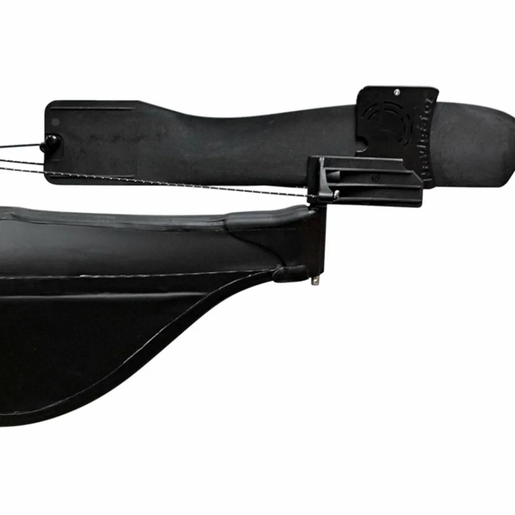 Per Fußrasten wird das Ruderblatt bewegt. Dies hat auch den Vorteil, dass man eine feste Abstützung für die Füße zur Verfügung hat. Bei Nichtgebrauch lässt sich das Ruder einfach an Bord holen.