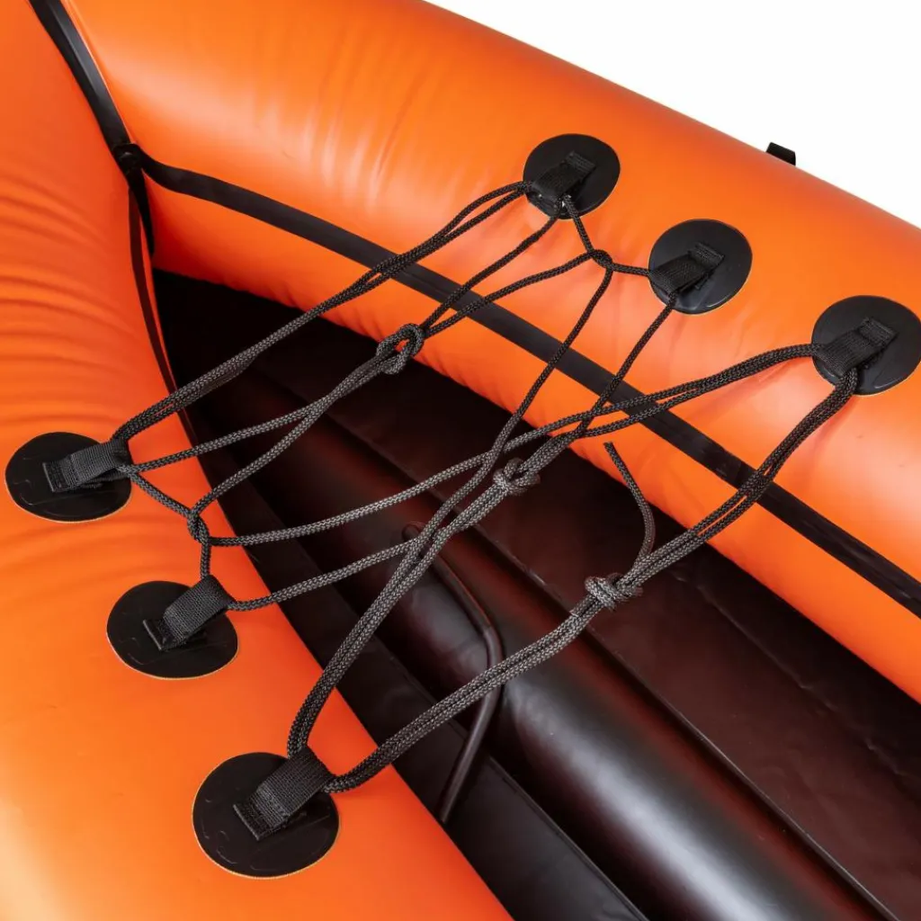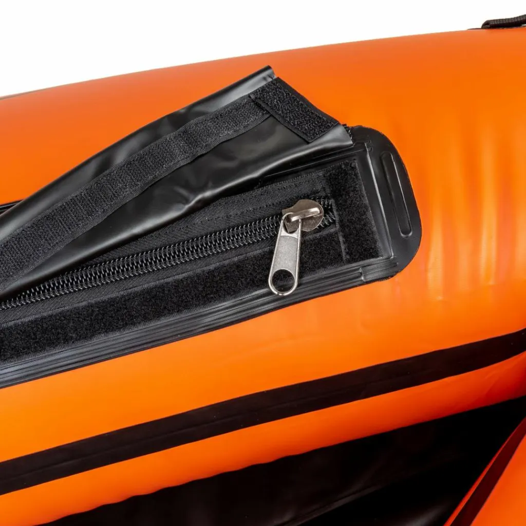 Die beiden in die Schläuche integrierten Gepäcktaschen haben gleich mehrere Vorteile. Zunächst einmal wird dein Gepäck sicher und trocken verstaut, ohne dass du es in zusätzlichen Packsäcken auf dem Deck verzurren musst. Zudem wirkt sich das Verstauen in den Luftschläuchen sehr vorteilhaft auf die Gewichtsverteilung im Boot aus. Durch den niedrigeren Schwerpunkt ist dein Packraft weniger windanfällig. Und zu guter Letzt ergibt sich auch ein Sicherheitsvorteil, denn die wasserdicht verschlossenen Taschen können im Falle eines Lochs in der Außenhaut als Auftriebskörper fungieren. – Clever, oder?