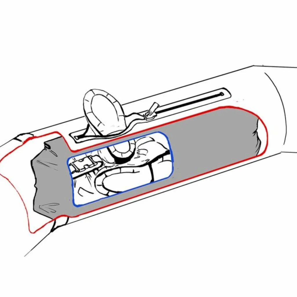 Die beiden in die Schläuche integrierten Gepäcktaschen haben gleich mehrere Vorteile. Zunächst einmal wird dein Gepäck sicher und trocken verstaut, ohne dass du es in zusätzlichen Packsäcken auf dem Deck verzurren musst. Zudem wirkt sich das Verstauen in den Luftschläuchen sehr vorteilhaft auf die Gewichtsverteilung im Boot aus. Durch den niedrigeren Schwerpunkt ist dein Packraft weniger windanfällig. Und zu guter Letzt ergibt sich auch ein Sicherheitsvorteil, denn die wasserdicht verschlossenen Taschen können im Falle eines Lochs in der Außenhaut als Auftriebskörper fungieren. – Clever, oder?