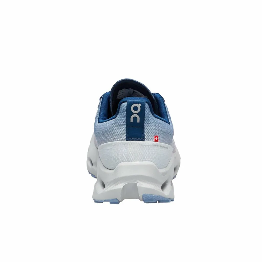 Auffallend ist beim Cloudsurfer Trail vor allem die Anordnung der Cloud-Dämpfungselemente. Im Zehen- und Ballenbereich sind sie horizontal angeordnet, im Mittelfußbereich kippen sie leicht nach hinten, wodurch zum einen der Vortrieb verbessert, vor allem aber die Abrollbewegung des Fußes auch bei hohem Tempo optimal unterstützt wird. Die Laufsohle ist mit griffigem Profil ausgestattet, dass up- und downhill für bestmöglichen Halt sorgt. Dank der moderaten Profiltiefe kannst du den Trailrunningschuh auch auf härteren Untergründen noch gut nutzen.