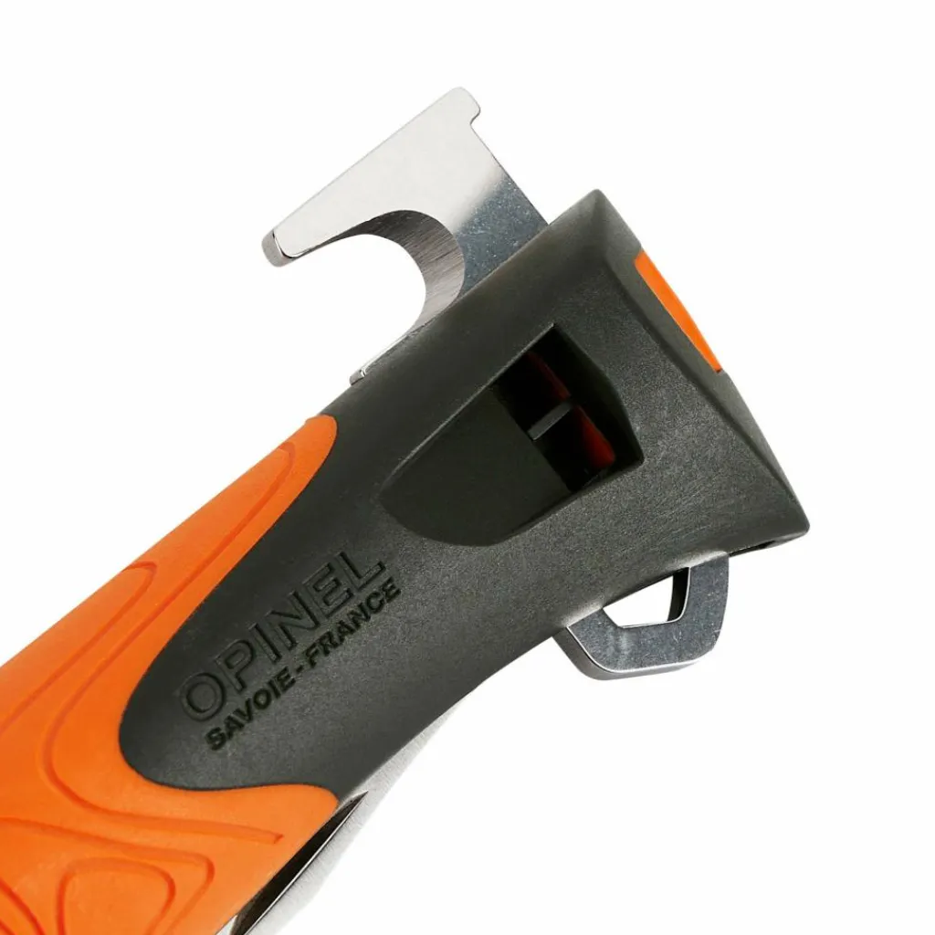 Mit diesem Modell erweitert Opinel seine Explore-Serie. Neben einer 10 cm langen Klinge stehen dir im Fiberglas–Polyamid-Griff eine Pfeife, Hakenklinge und ein Zeckenentferner zur Verfügung.
