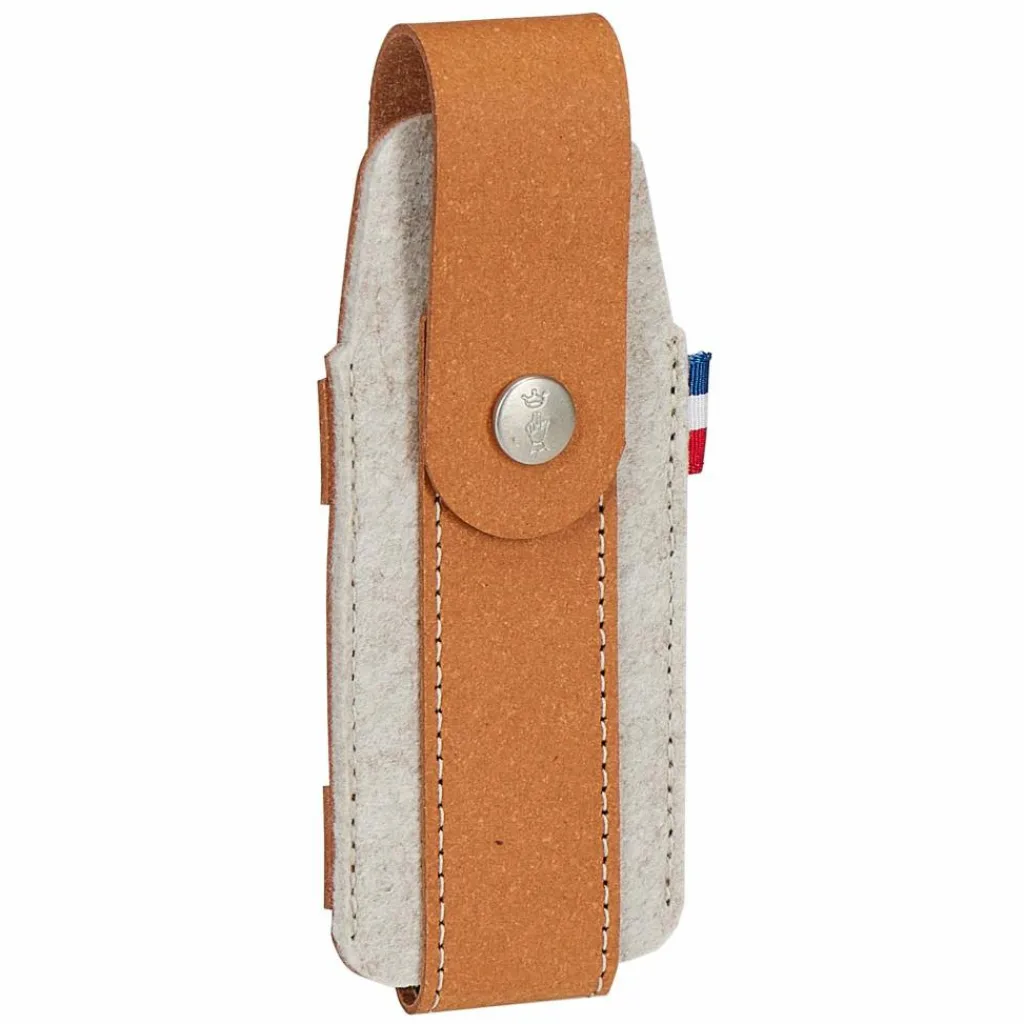 Dieses Etui besteht aus einem Materialmix aus PET-Filz und recycelten Lederabfällen mit Pflanzenfasern. Du kannst es dank der Gürtelschlaufen waagerecht oder senkrecht am Gütel befestigen.