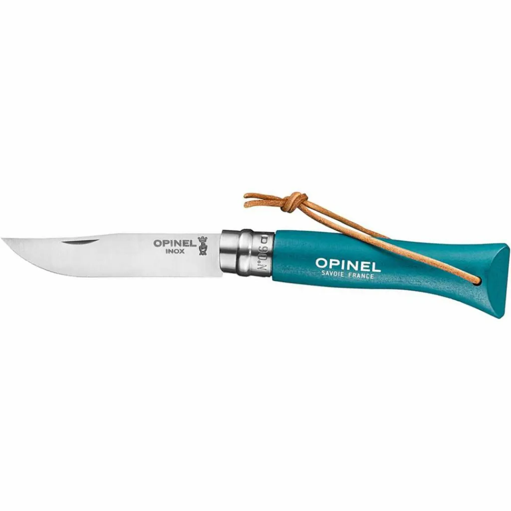 Ein Klappmesser, das Technik und Ästhetik vereint: stabile Klinge, ein Buchenholzgriff in frischem Türkis und praktische Befestigungsschlinge. Damit bist du für vielseitige Einsätze vorbereitet.