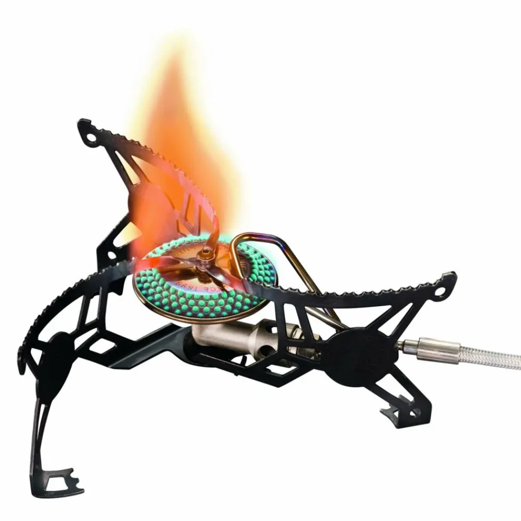 Die Flamme kannst du in beiden Modi präzise am Ventil und somit abseits der Flamme regulieren. Durch die geringe Bauhöhe von nur 65 mm stehen auch große Töpfe sicher und stabil.