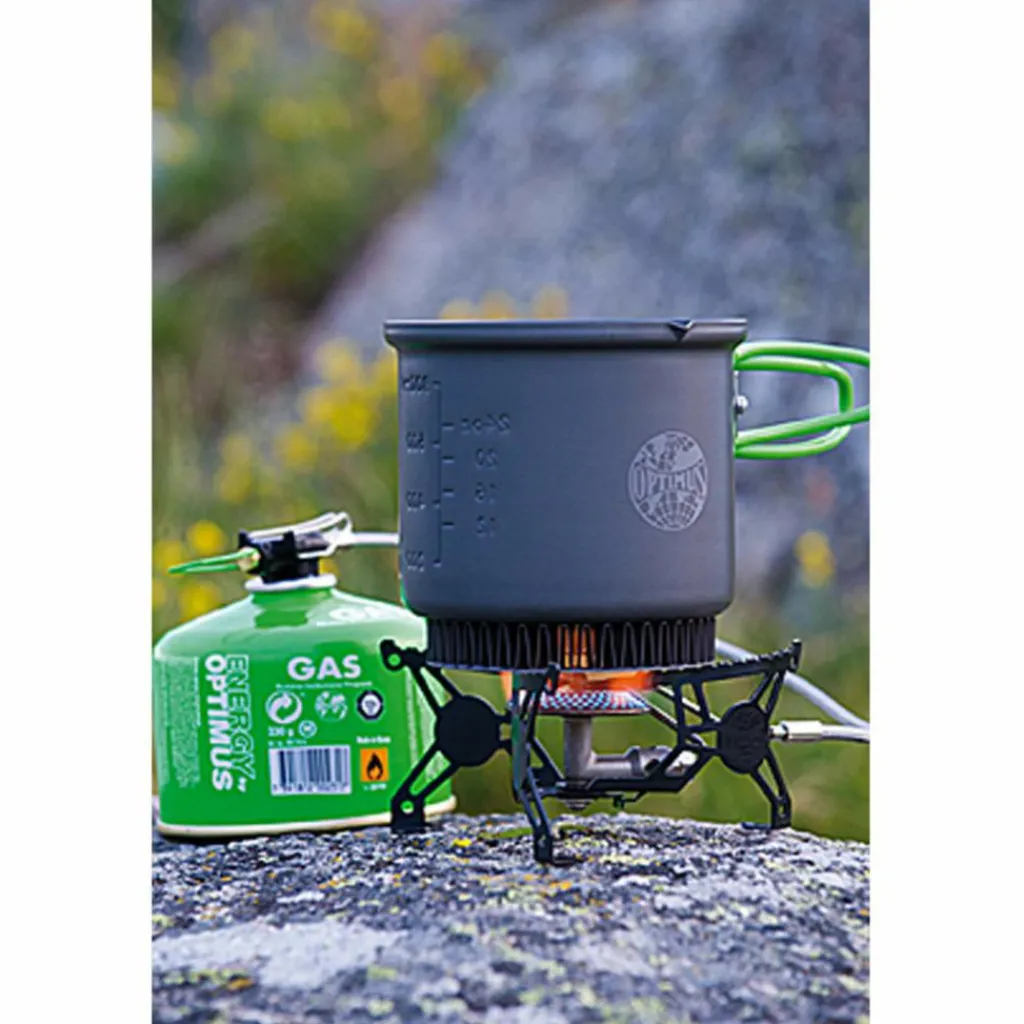 Der Kocher arbeitet mit zwei Brennmodi und kann so viel Brennstoff sparen. Dazu wird die Gaskartusche entweder aufrecht hingestellt oder dank der integrierten Klappbeine am Ventil auf den Kopf gestellt. Dies erhöht die Flüssigbrennstoffzufuhr, was zu einer erhöhten Leistung, aber auch zu mehr Brennstoffverbrauch führt.