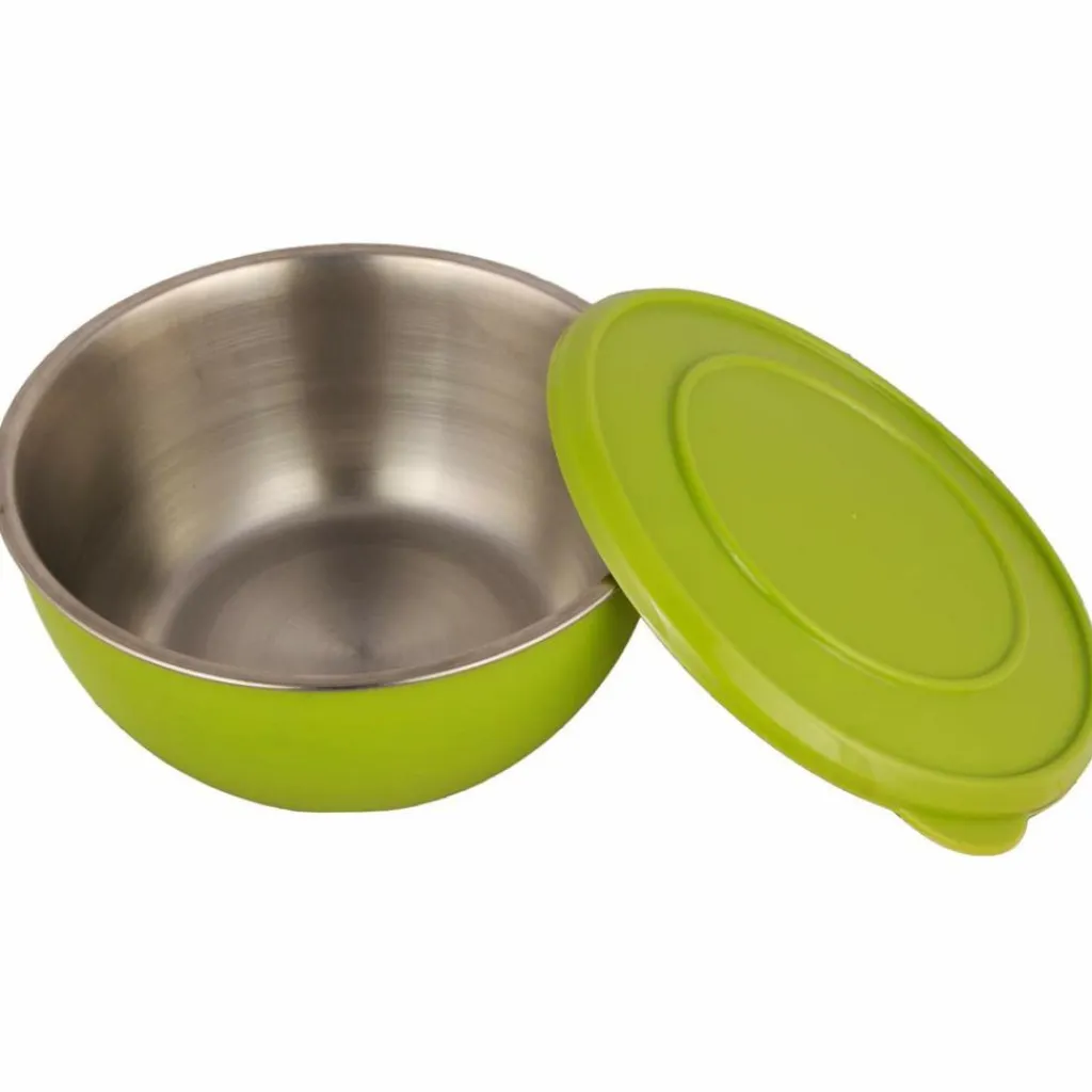 Schüssel-Set aus Edelstahl mit passendem Deckel und bunter Kunststoffhülle. Geeignet für das morgendliche Müsli, den Salat beim Grillabend oder eine wärmende Suppe.
