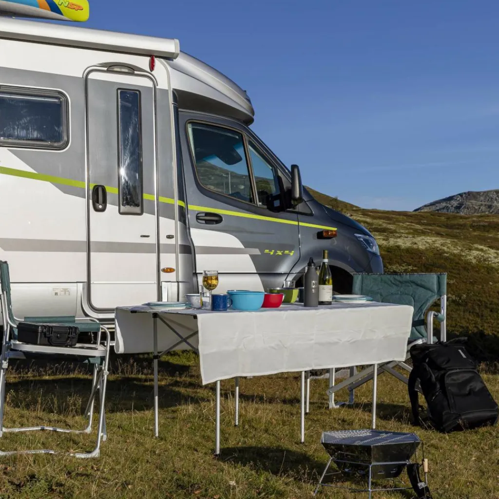 Für einen sicheren Stand sorgen die Edelstahlfüße. Sie umfassen die Feuerschale und verhindern, dass die zusammengesteckten Bleche ihren Halt verlieren. Der eingesetzte Rost lässt genügend Sauerstoff an Feuer und Kohle, damit ausreichend Hitze entstehen kann. Zum Transport kannst du alle Teile flach und platzsparend im Packbeutel verstauen.
