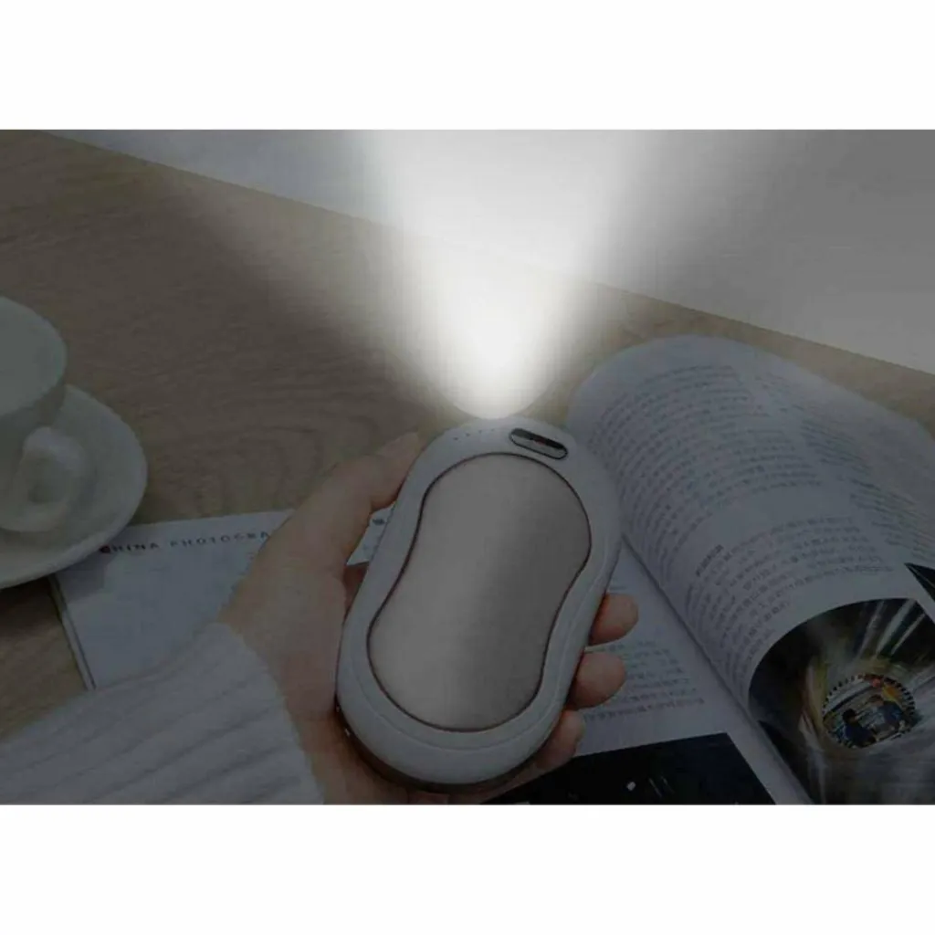 Multifunktionaler USB-Handwärmer, der durch seine beidseitigen Wärmeplatten Finger und Handflächen auf Temperatur hält. Nebenbei kannst du ihn als Powerbank und Schlüssellicht benutzen.