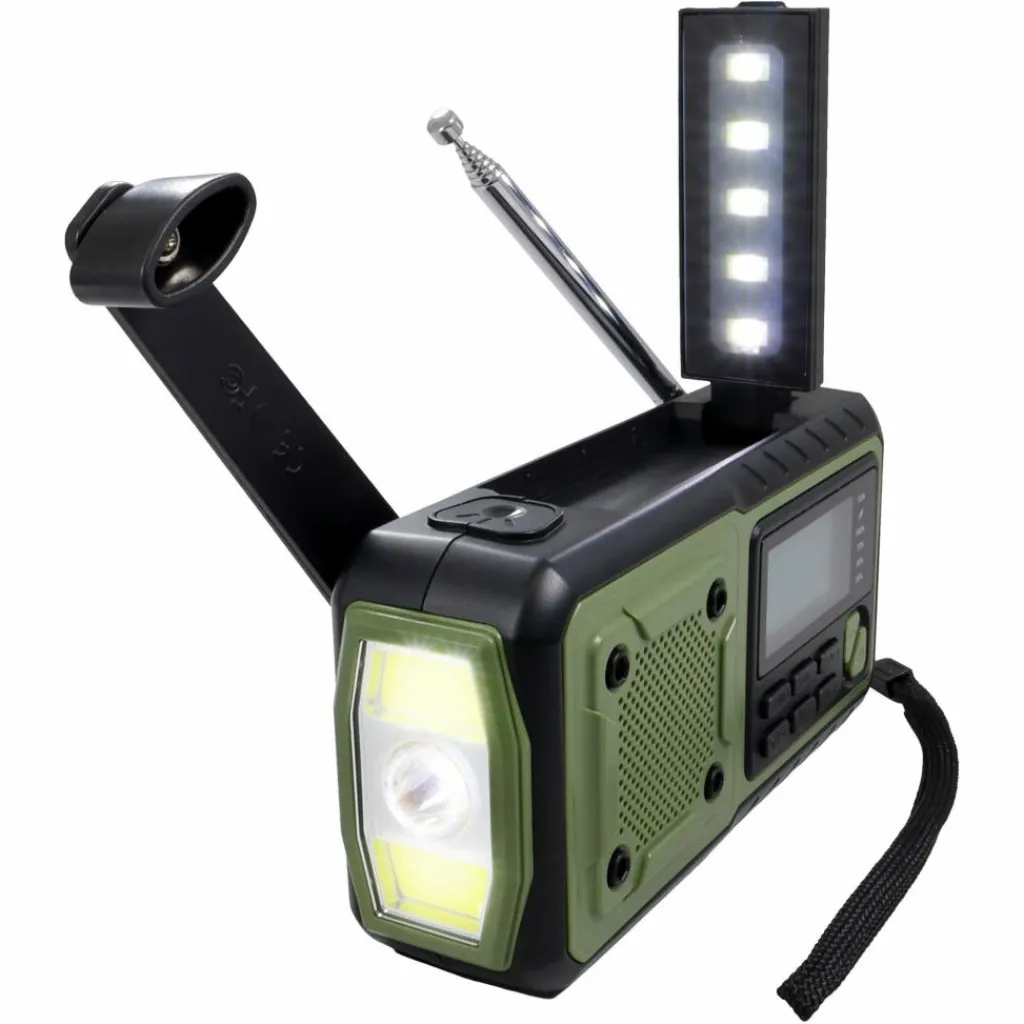Kurbelradio Multi, USB-C-Kabel, 21700 Akku, Handschlaufe, Bedienungsanleitung