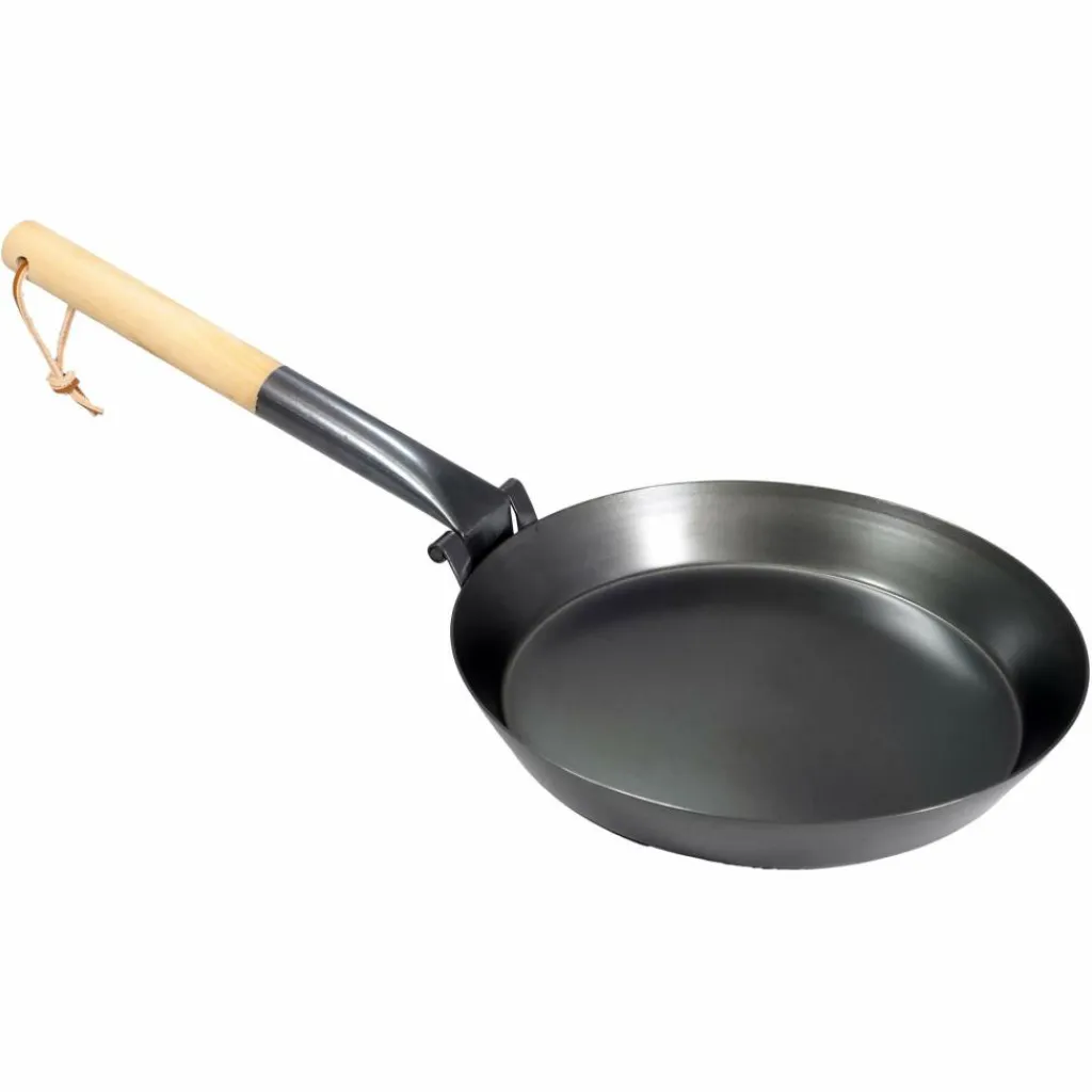 Pfanne aus Carbonstahl mit 24 cm Ø und vorbehandelter Oberfläche, sodass du sie ohne vorheriges Einbrennen sofort verwenden kannst. Der klappbare Eukalyptusholz-Griff sorgt für ein kleines Packmaß.