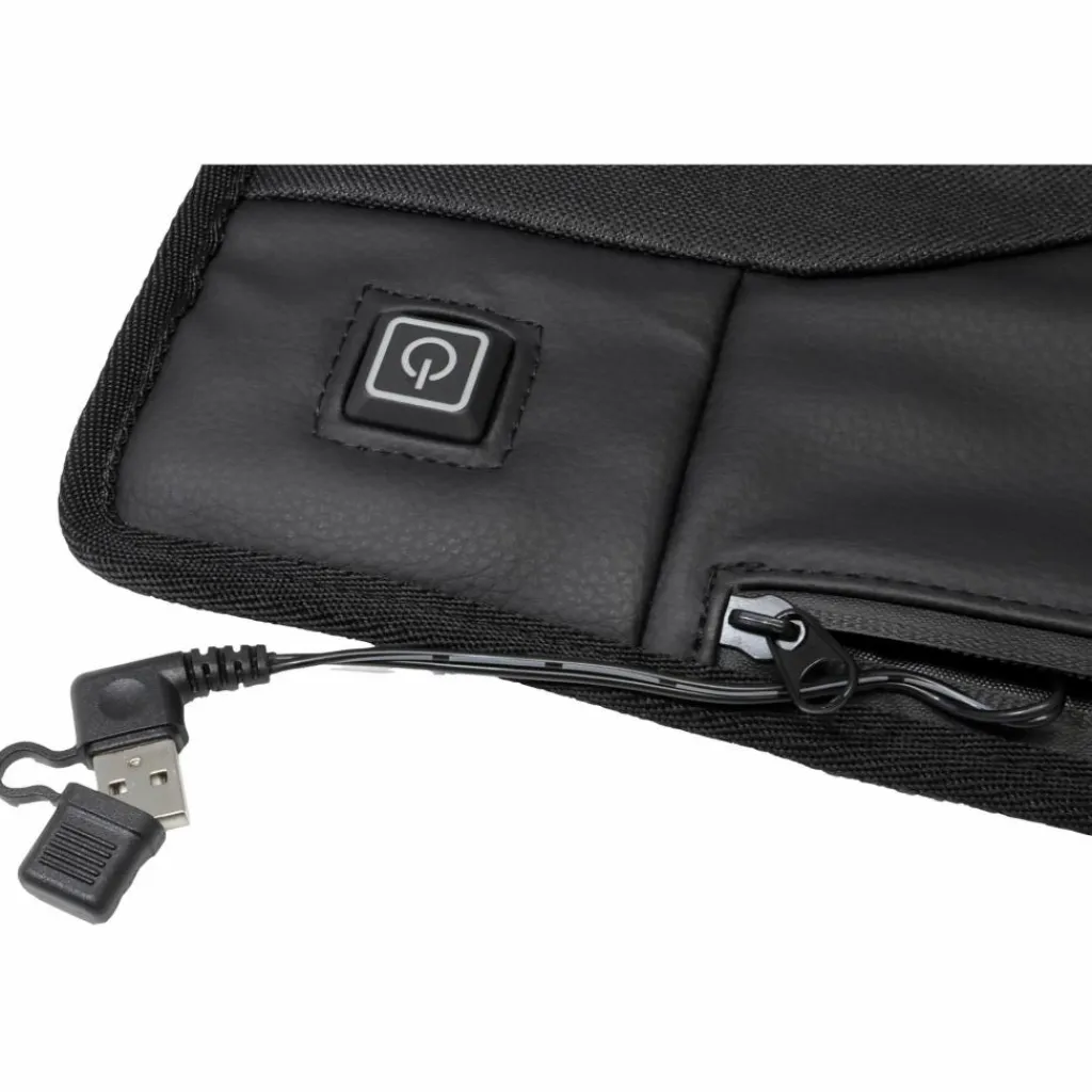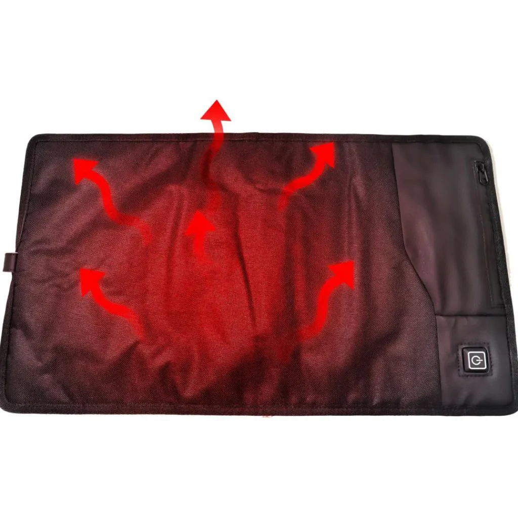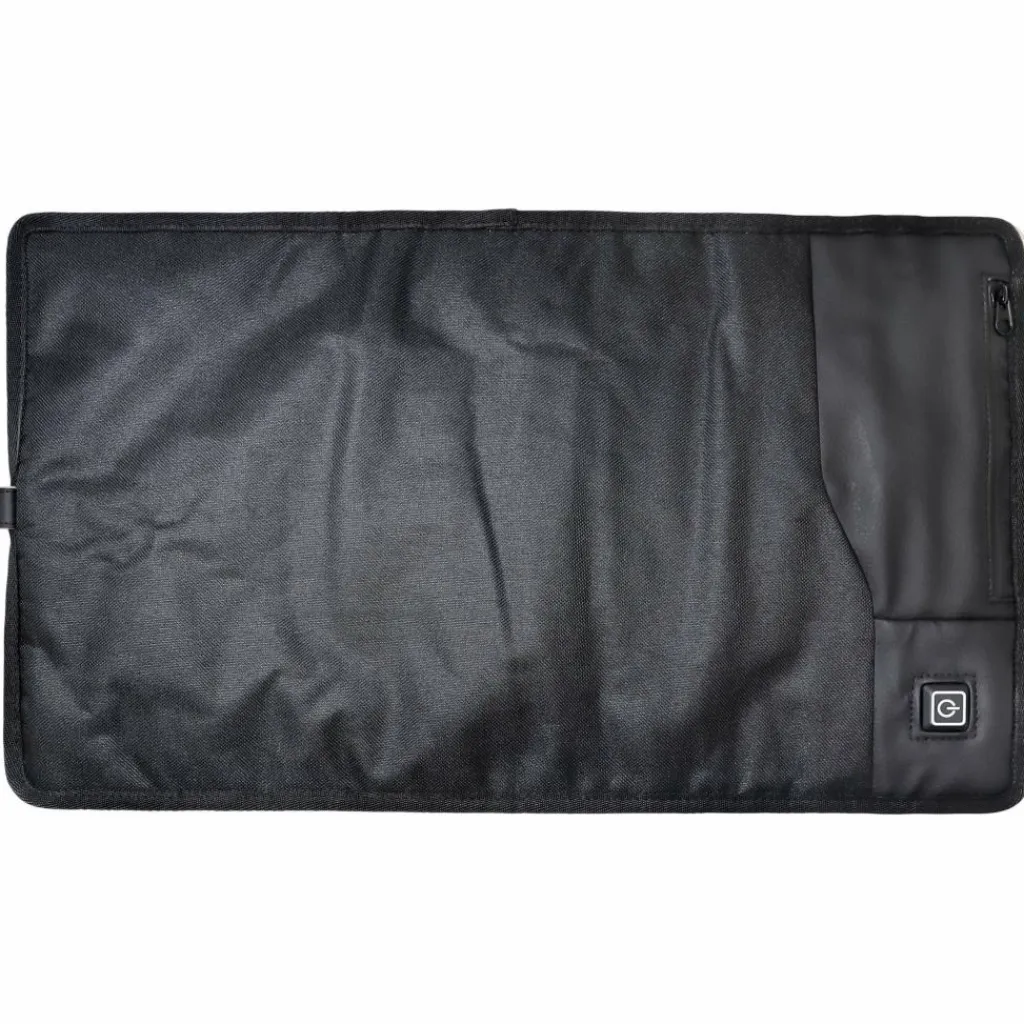 Mit dieser Sitzunterlage bleibt der Hintern selbst bei den kältesten Temperaturen angenehm warm. Der Strom wird durch eine (separat erhältliche) Powerbank geliefert, die in einer seitlichen Reißverschlusstasche verstaut werden kann. Gleich daneben befindet sich der Einschaltknopf, mit dem auch die Temperatur reguliert werden kann.