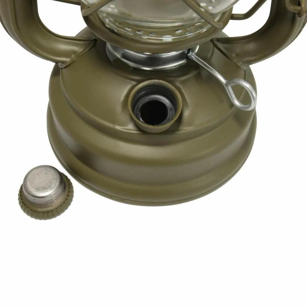 Sturmlaterne mit bis zu 20 Stunden Leuchtdauer. Der Tank fasst 340 ml und wird über die seitliche Öffnung befüllt. Der Betrieb ist mit Lampenöl oder Petroleum möglich.