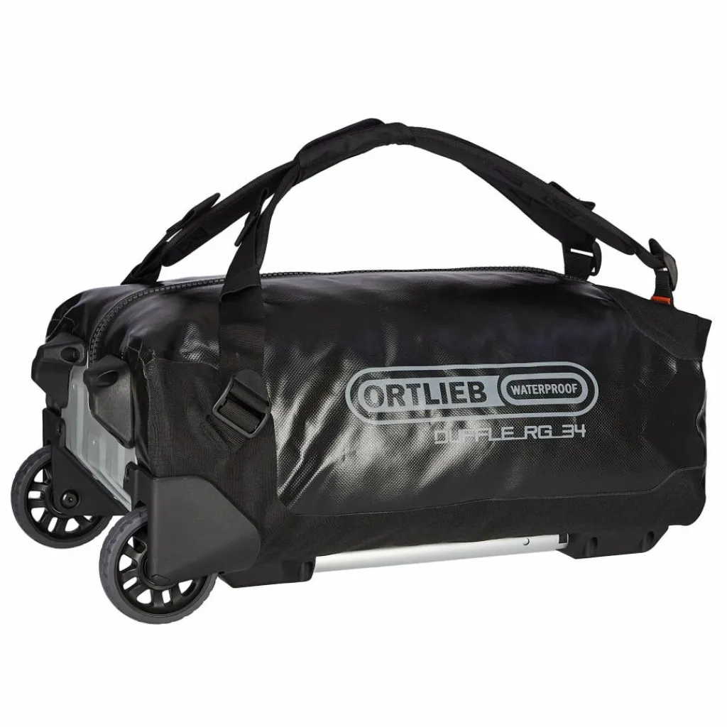 Fährt dank großer Rollen, starkem Chassis und Teleskopgriff höchst komfortabel und ist wasserdicht (IP67): Die Duffle RG ist eine robuste Reisetasche mit Rollsystem und zusätzlichen Schulterträgern.