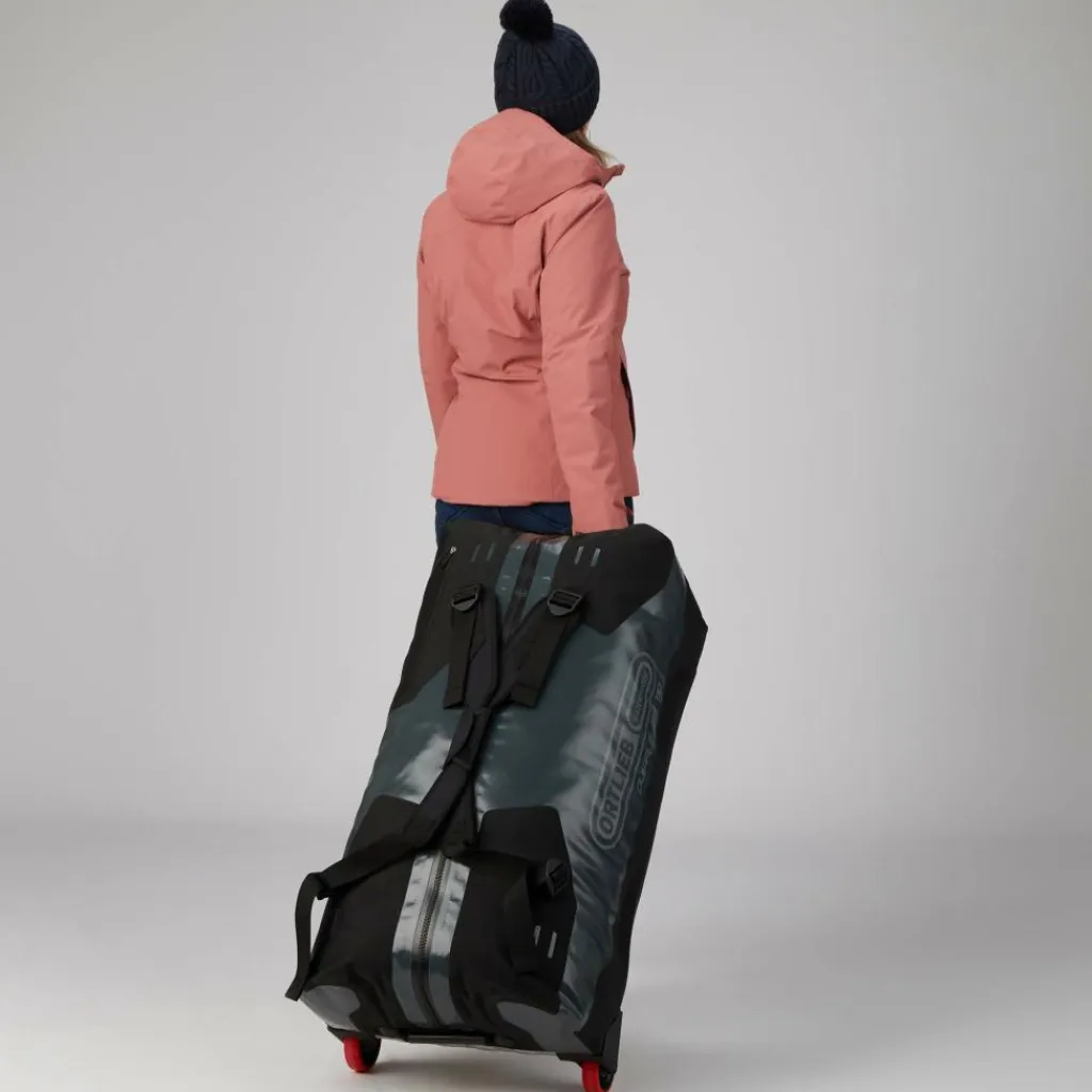 Dadurch ist die Reisetasche mit Rollen vielseitig einsetzbar. Auch die Tragemöglichkeiten bieten Flexibilität. So kann die Duffle mithilfe der gepolsterten Schulterträger kurzzeitig wie ein Rucksack auf dem Rücken getragen werden. Oder du ziehst sie hinter dir her, was dank der großen Rollen auch in unebenem Gelände komfortabel geht. Um Gewicht zu sparen, z. B. auf Flugreisen, hat Ortlieb auf einen Teleskopgriff verzichtet. Stattdessen verfügt die Duffle RS GT über einen längenverstellbaren Griff zum Hinterherziehen.
