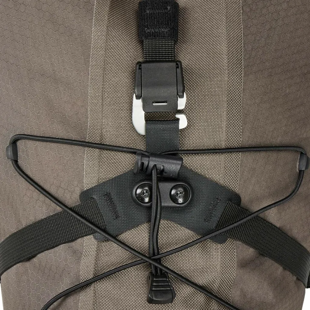 Das Seat-Pack QR bringt durch den klassischen Ortlieb-Rollverschluss ein variables Volumen mit. Für die perfekte und einfache Kompression sorgt ein Ventil, wie es auch in den Ortlieb-Packsäcken zum Einsatz kommt. Die hohe Eigenstabilität und Steifigkeit, die dieses Satteltasche besitzt, kommt durch eine starke Innen- und Außenstabilisierung plus Kompressionsriemen zustande. Das macht einen sicheren Transport deiner Ausrüstung möglich. Unter der praktischen Elastikkordel auf der Satteltasche kannst du fix deine Fahrradhandschuhe, Mütze oder eine leichte Jacke verstauen. Reflektierende Flächen sowie Laschen für ein Zusatzlicht sorgen für Sichtbarkeit, wenn es dunkel wird.