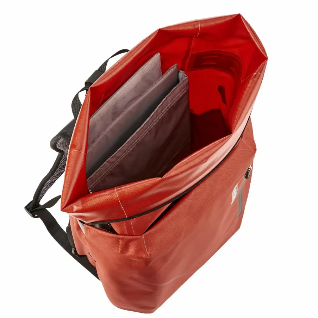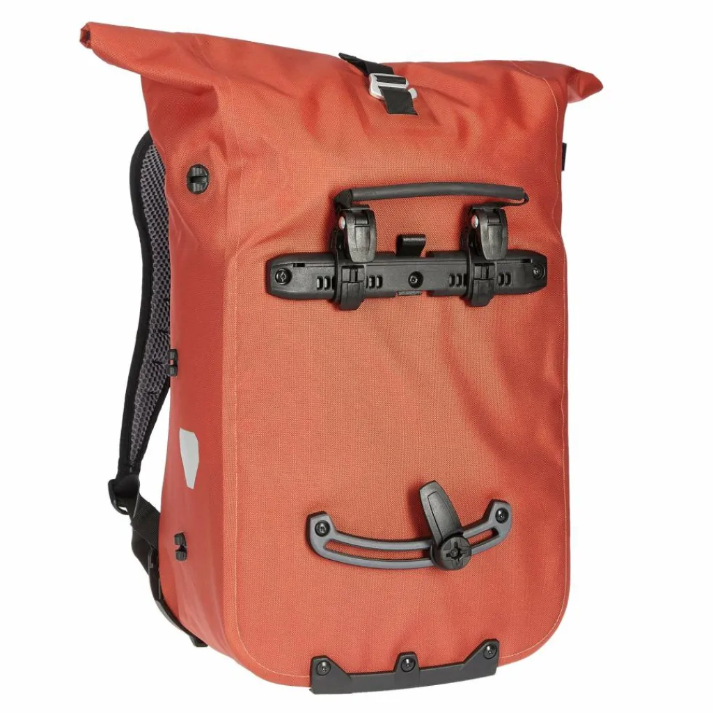 Der Clou: Du kannst es von der einen Seite auf die andere Seite in Sekunden umklappen und fixieren. Fertig ist die Fahrradtasche, respektive der Rucksack! Einfacher kann man samt Tasche gar nicht vom Drahtesel auf Schusters Rappen wechseln. Das Flap schützt jeweils die abgedeckte Seite. Und es bewahrt dich vorm Schmutz, der eventuell vom Hinterrad an deine Packtasche geschleudert wurde.