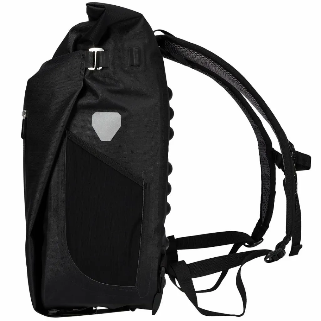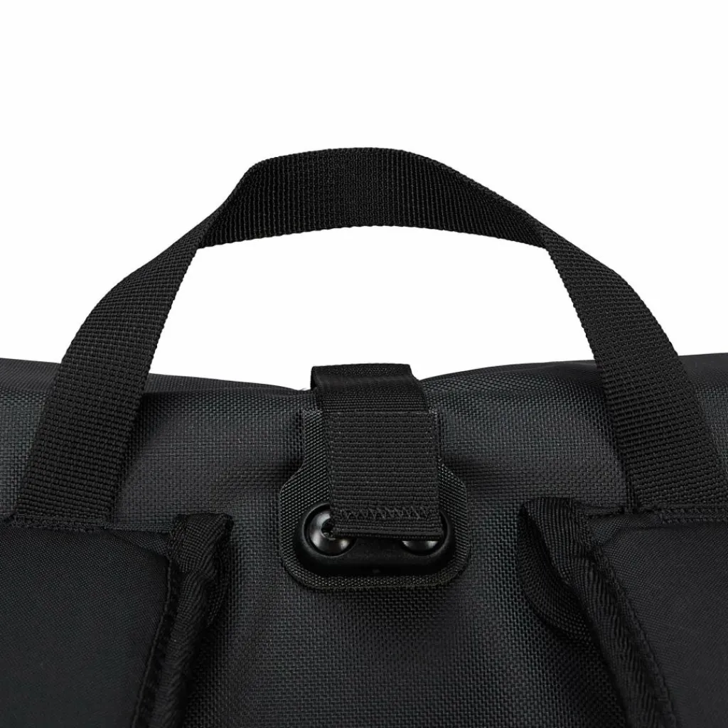 Der Clou: Du kannst es von der einen Seite auf die andere Seite in Sekunden umklappen und fixieren. Fertig ist die Fahrradtasche, respektive der Rucksack! Einfacher kann man samt Tasche gar nicht vom Drahtesel auf Schusters Rappen wechseln. Das Flap schützt jeweils die abgedeckte Seite. Und es bewahrt dich vorm Schmutz, der eventuell vom Hinterrad an deine Packtasche geschleudert wurde.
